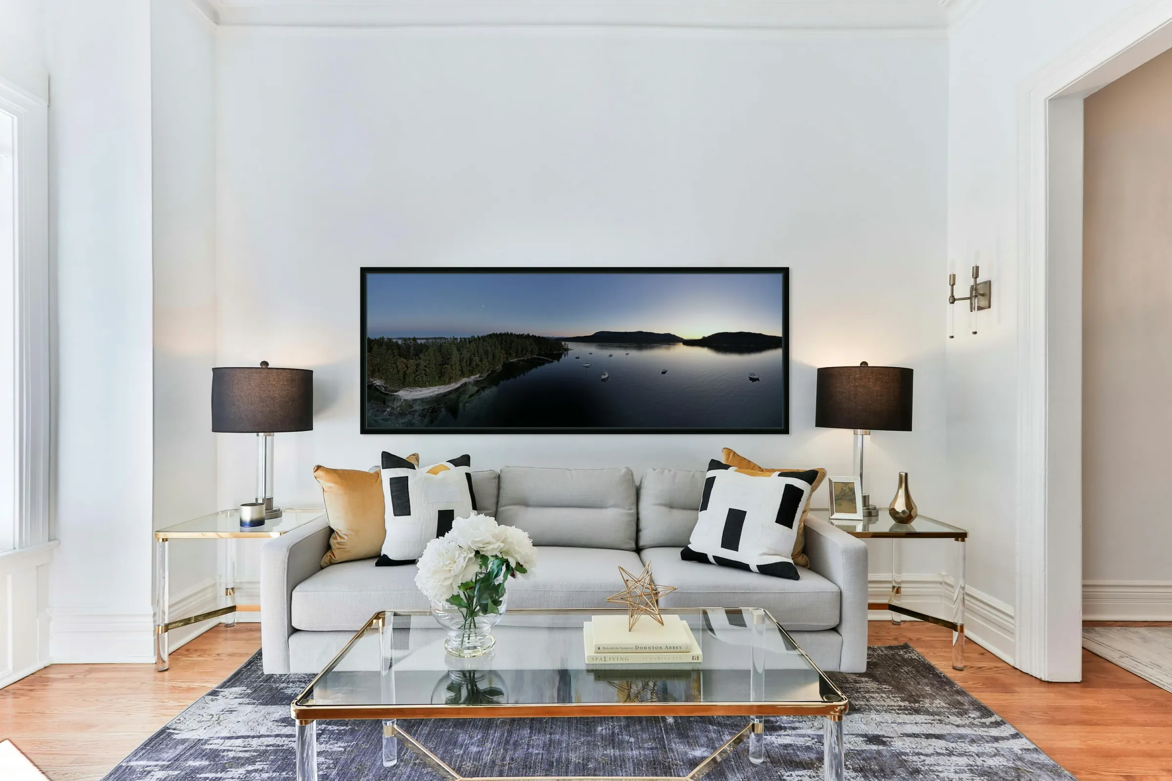 Printed to the edge - Ready to hang - provided with 4 premium polished aluminum stand off ( wall screws and mounting hardware provided )