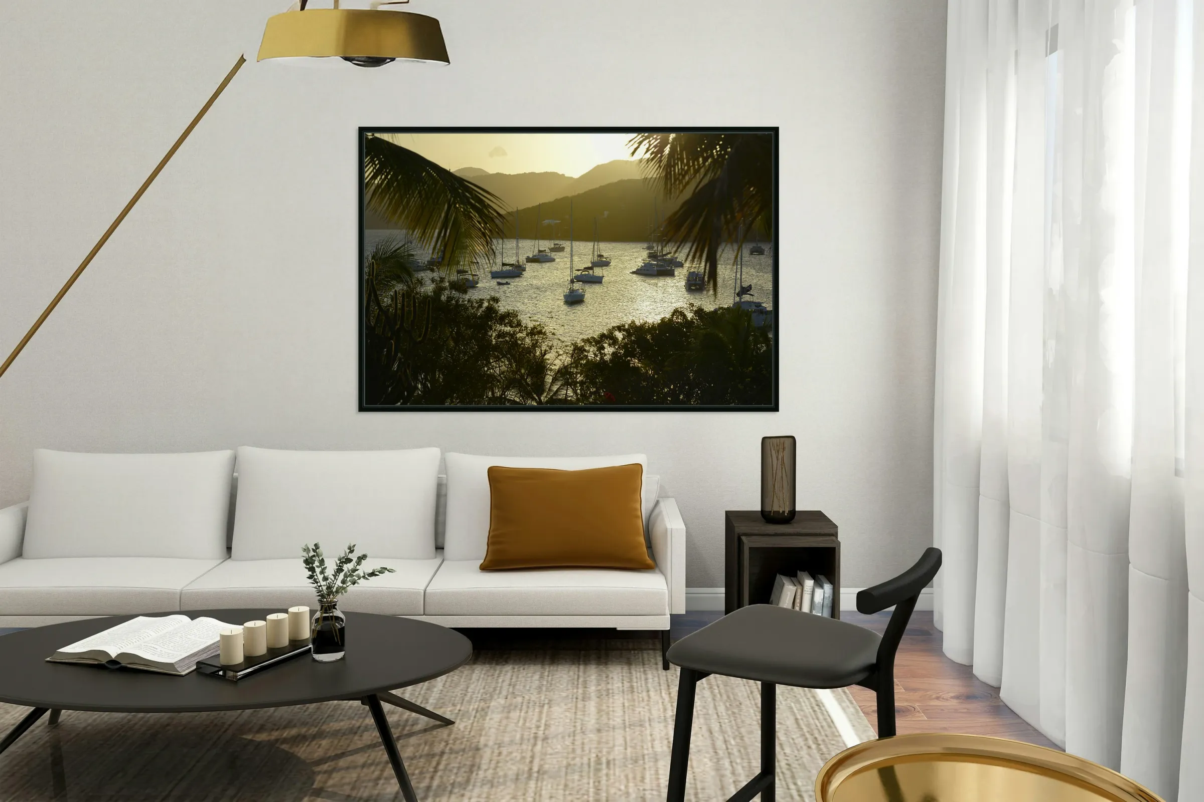 Catamarans and sailboats at the anchorage at Pussers Marina Cay Picture Frame Printing