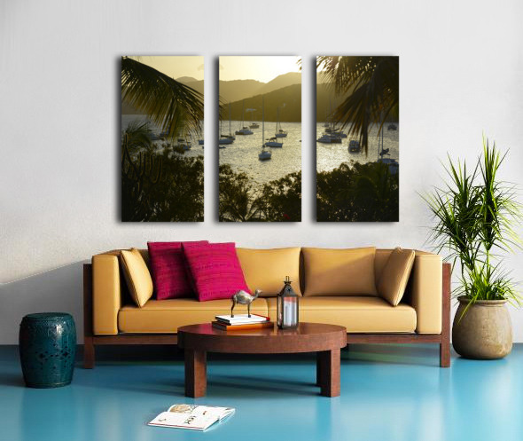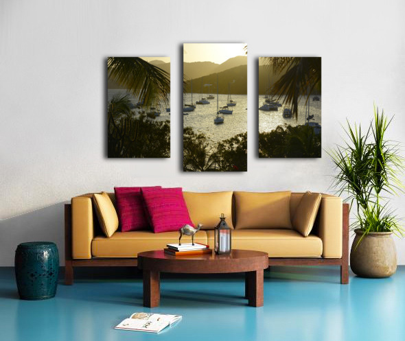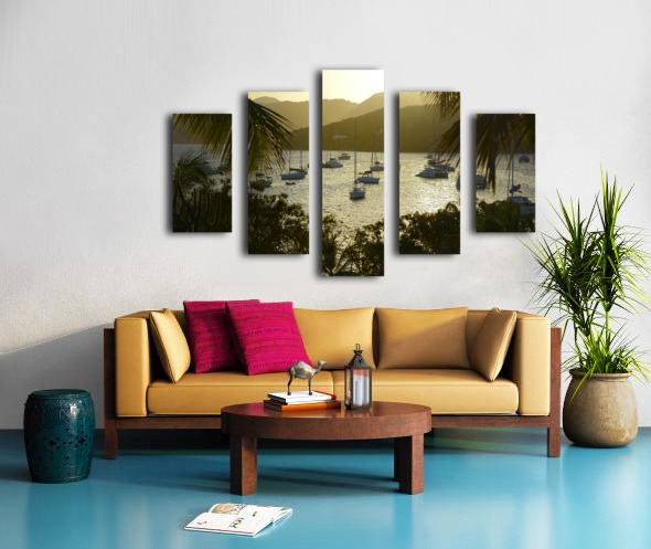 Catamarans and sailboats at the anchorage at Pussers Marina Cay Canvas print