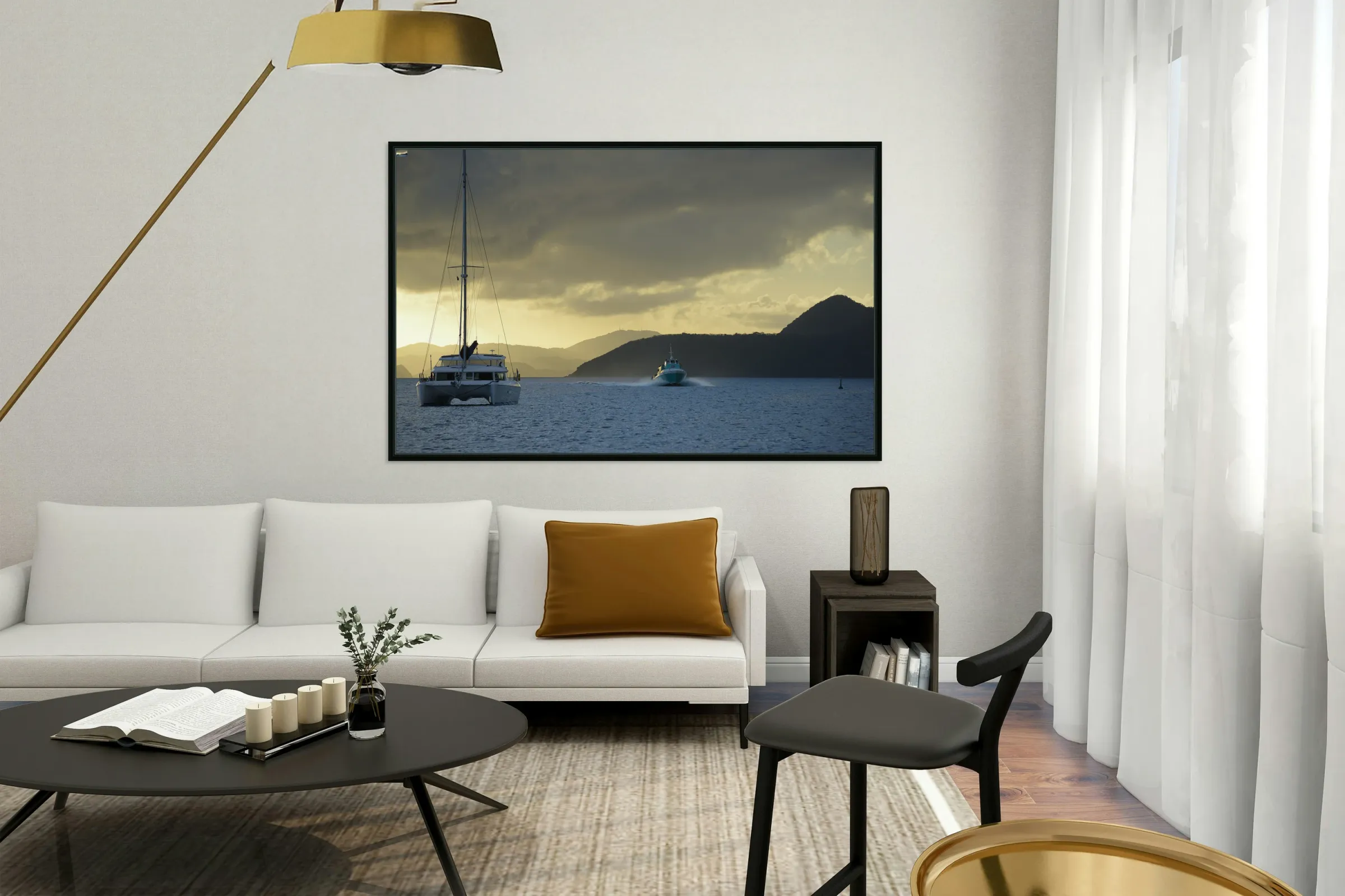 Get this artwork "Passenger ferry and anchored catamaran at Sopers Hole" in a framed print.