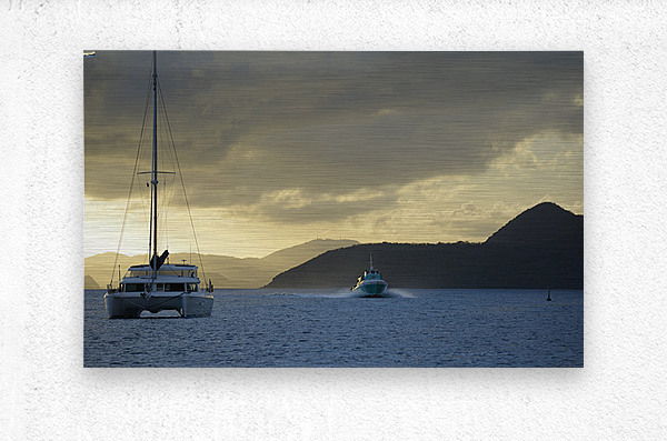 ABOUT THIS ARTWORK: PASSENGER FERRY AND ANCHORED CATAMARAN AT SOPERS HOLE