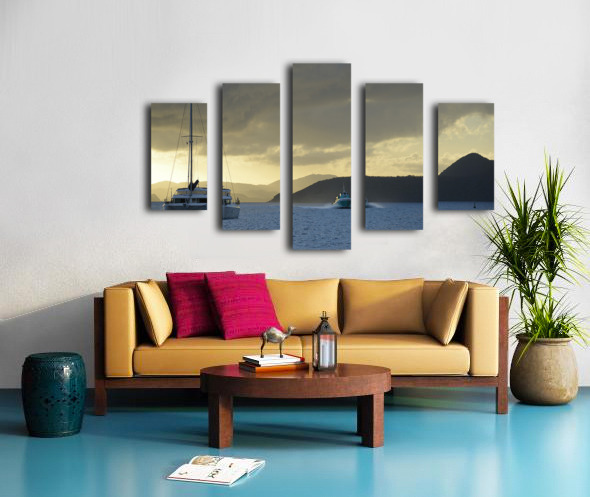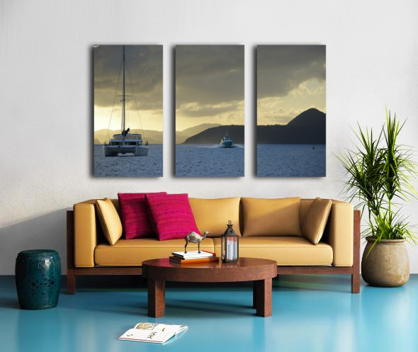 Passenger ferry and anchored catamaran at Sopers Hole Canvas print