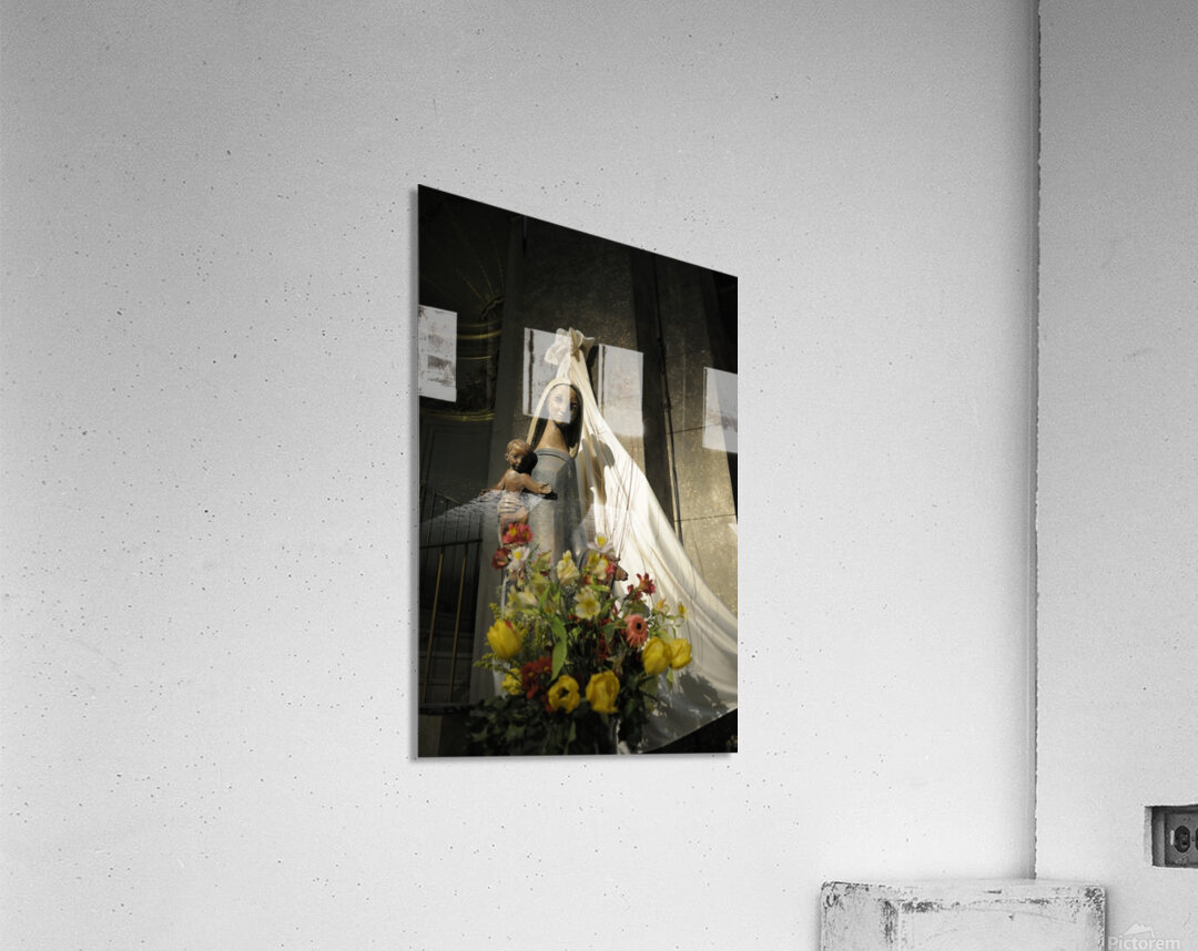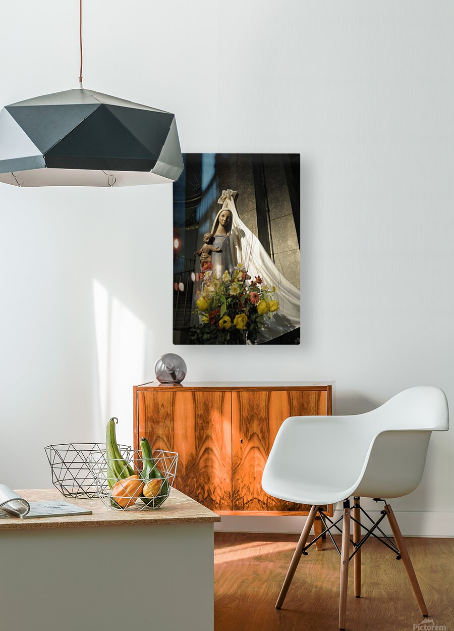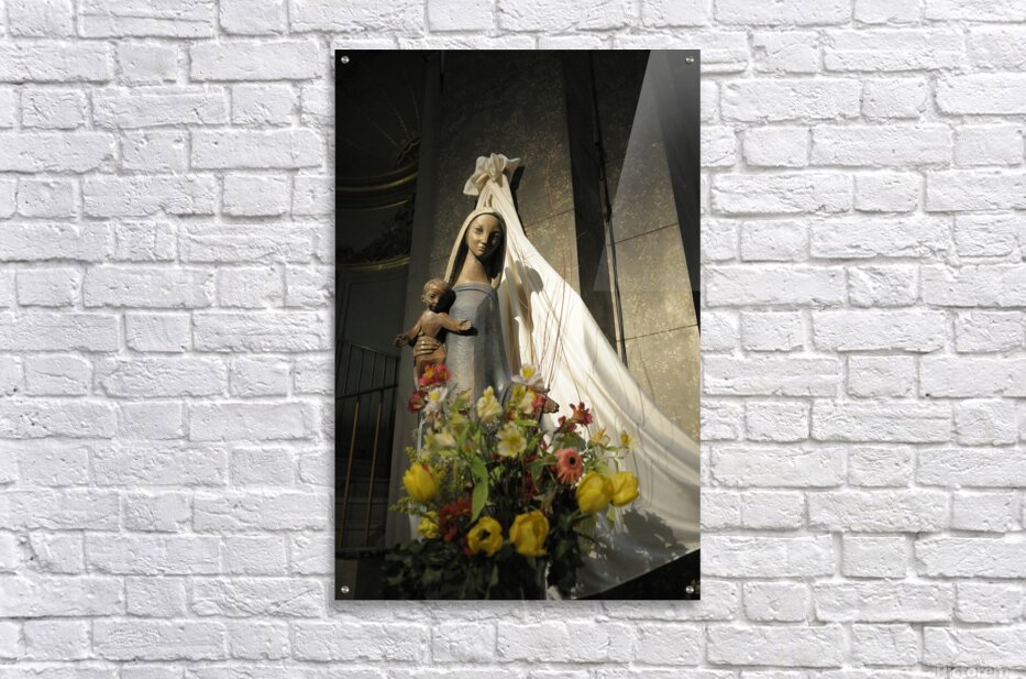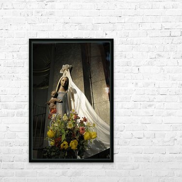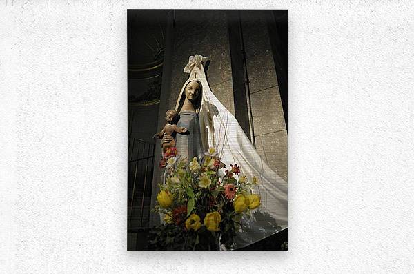 Wood carving of the virgin with bouquet of flowers Eglise Saint Pothin Picture Frame Printing