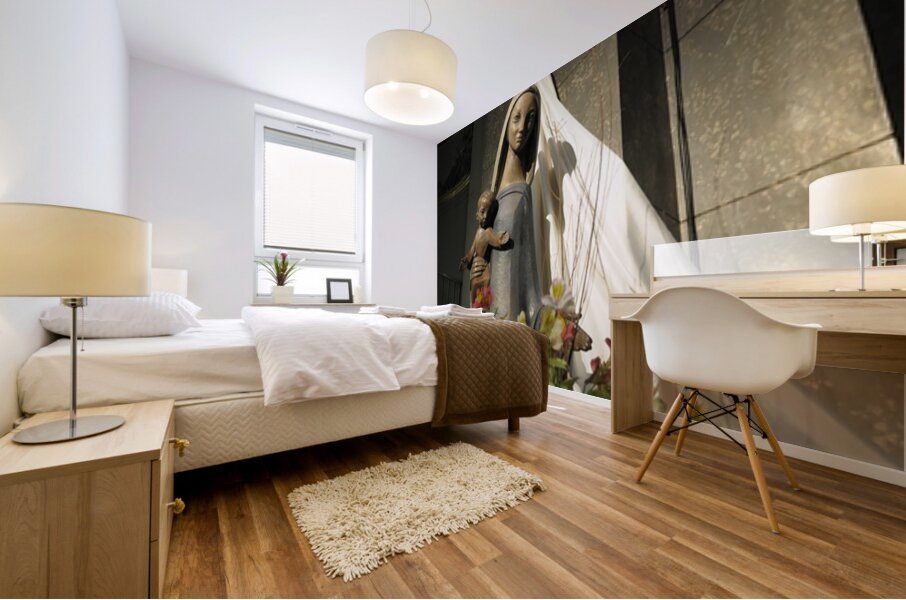 Wood carving of the virgin with bouquet of flowers Eglise Saint Pothin Kevin Oke Puzzle printing