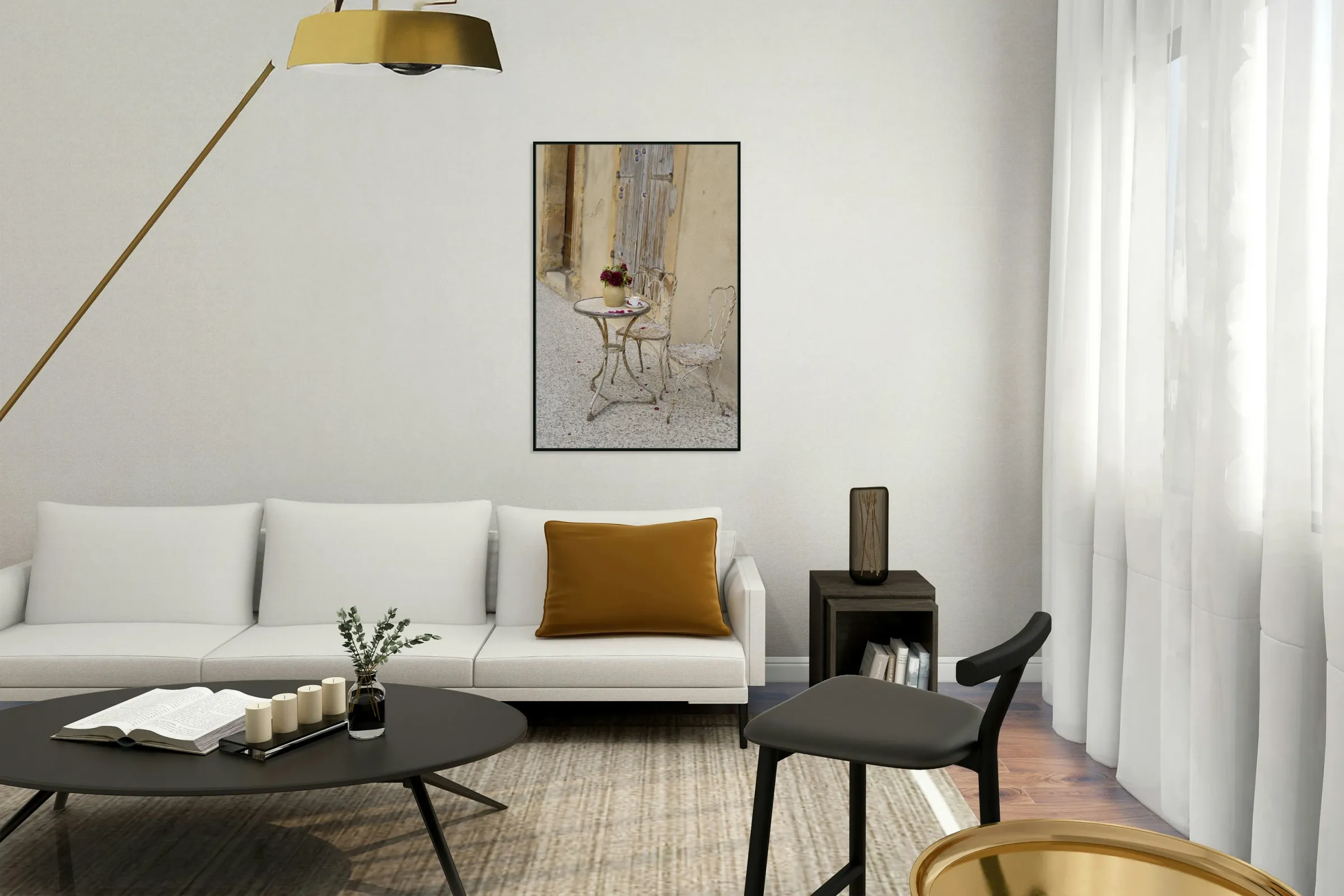 Get this artwork "Outdoor table with flowers" in a framed print.
