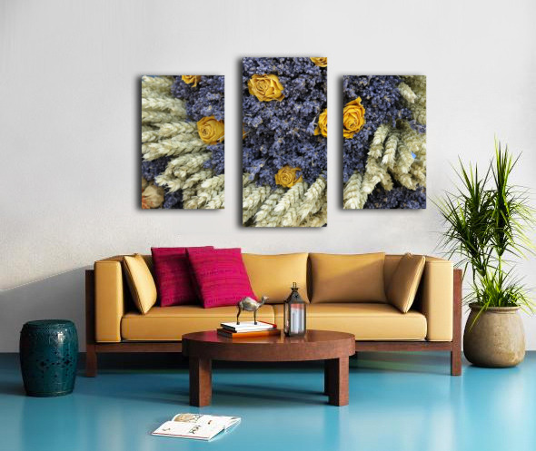 Dried yellow roses and lavender - Lourmarin Canvas print