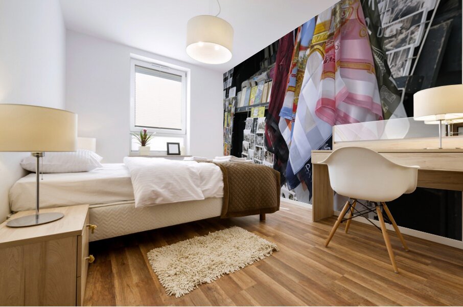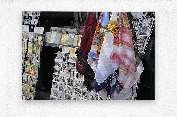Scarves and postcards for sale on the banks of the Seine River - Paris Kevin Oke Puzzle printing
