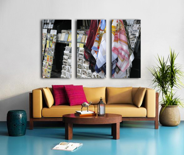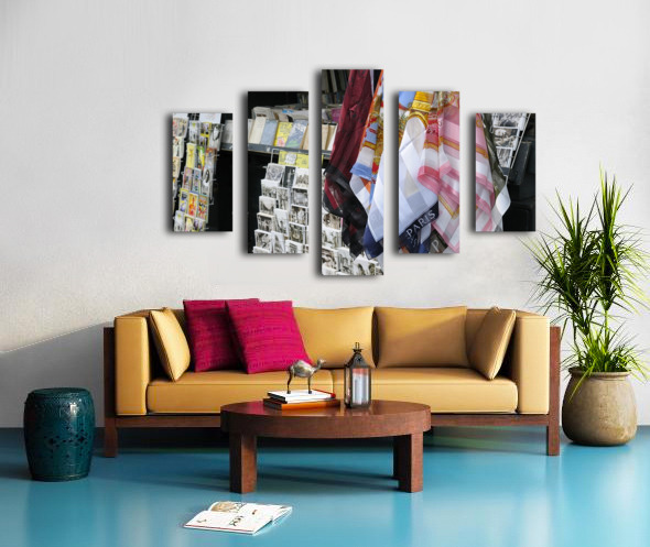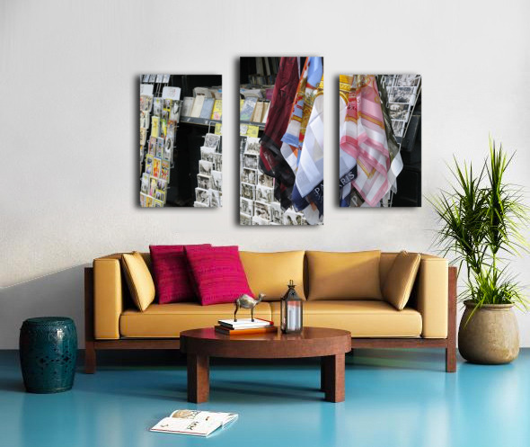 Scarves and postcards for sale on the banks of the Seine River - Paris Canvas print