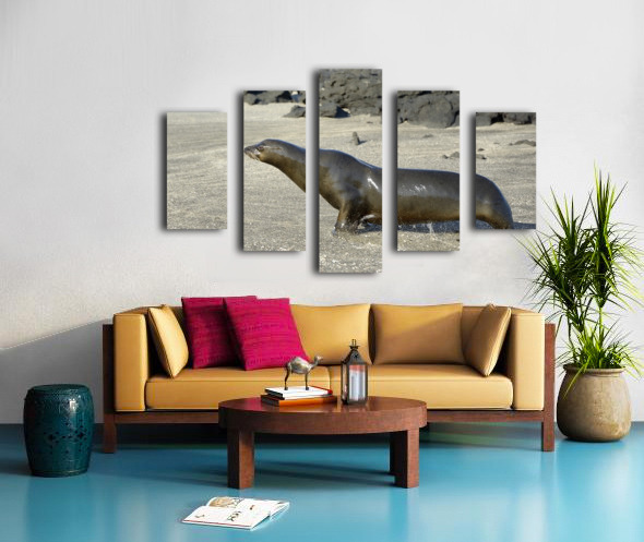 Galapagos sea lion male charging Punta Espinosa Fernandina Island Galapagos Islands Ecuador Canvas print