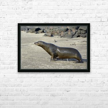 Get this artwork "Galapagos sea lion male charging Punta Espinosa Fernandina Island Galapagos Islands Ecuador" in a framed print.