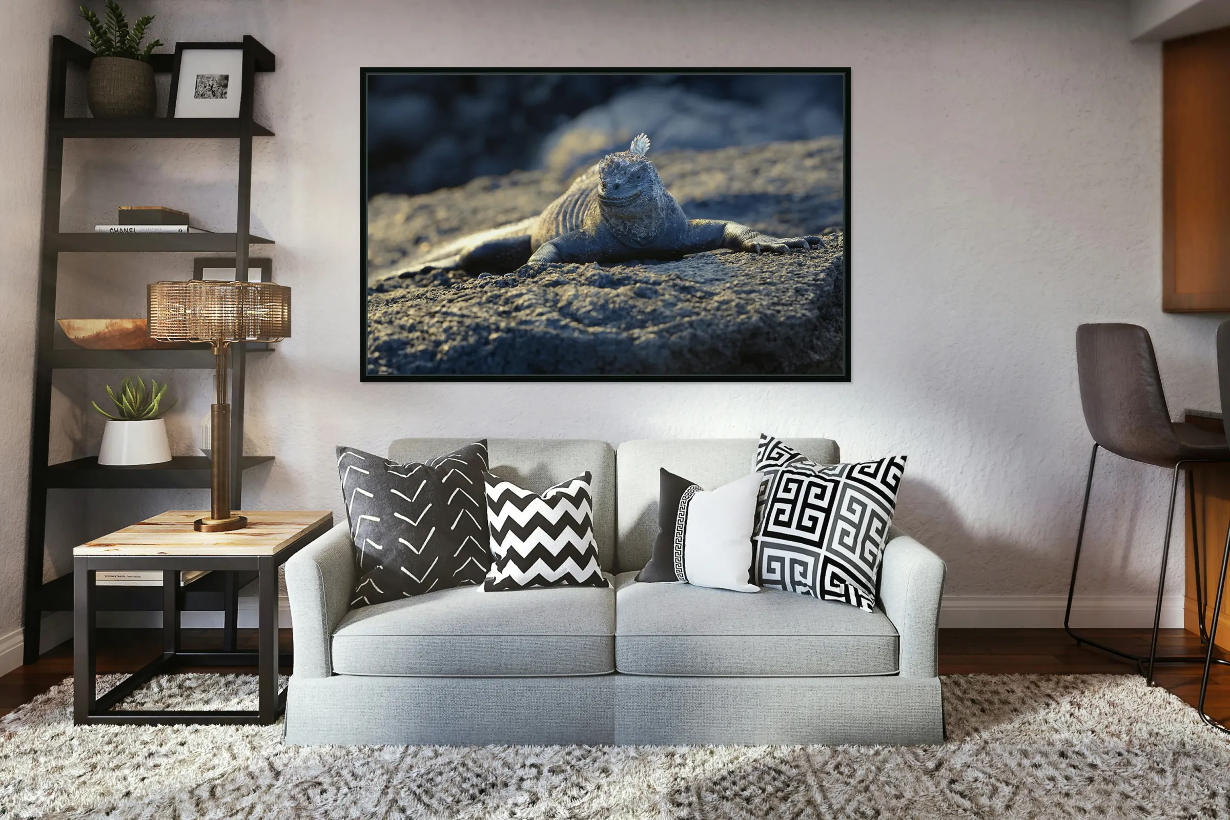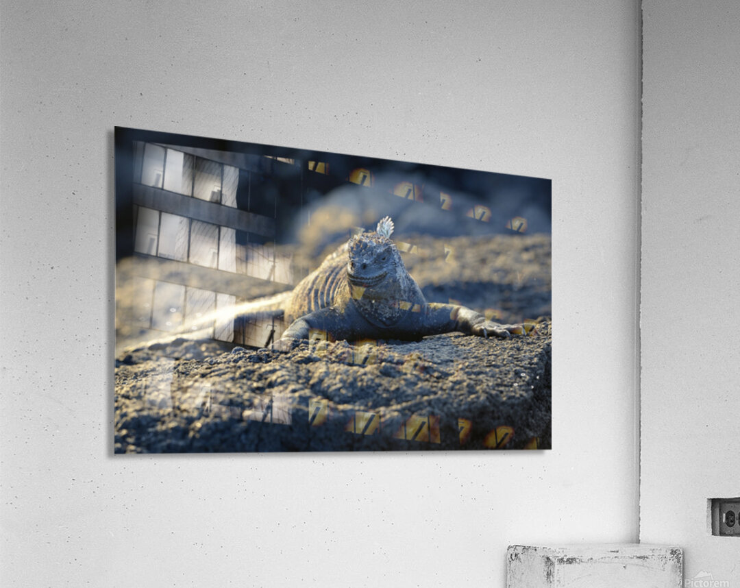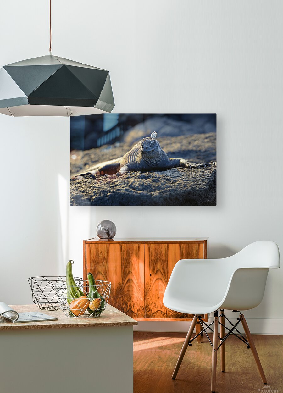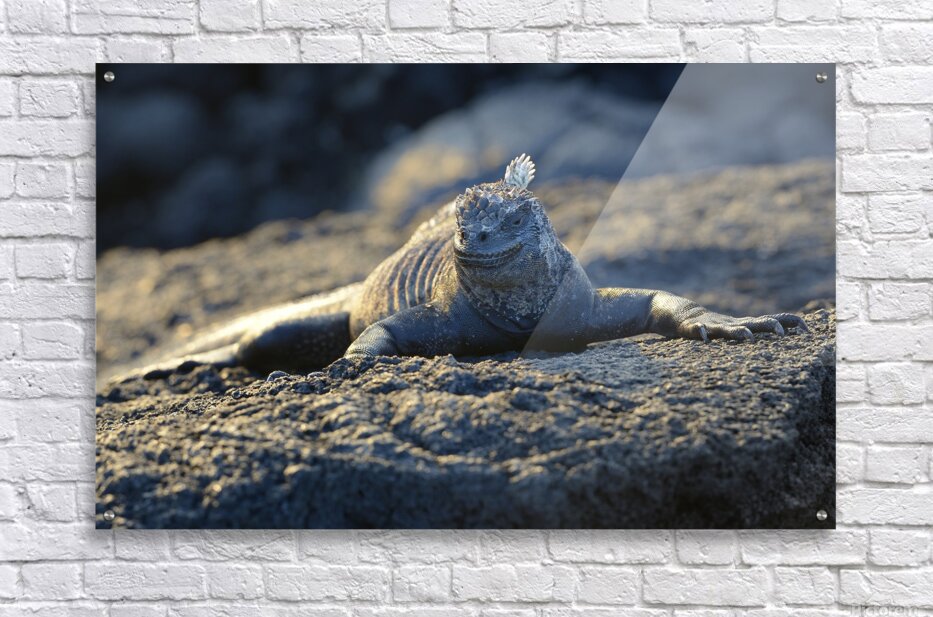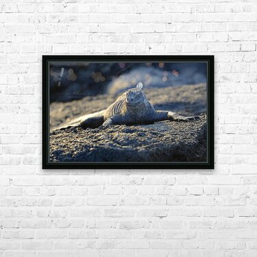 Marine Iguana at sunset Amblyrhynchus cristatus Punta Espinosa Fernandina Island Galapagos Islands Ecuador Picture Frame Printing