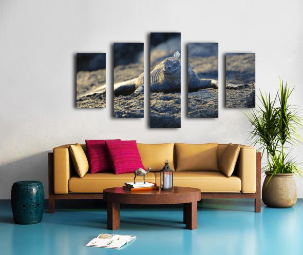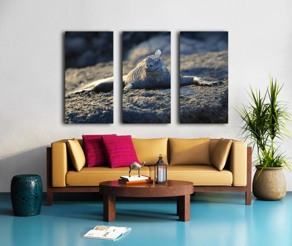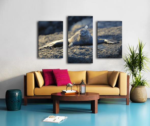Marine Iguana at sunset Amblyrhynchus cristatus Punta Espinosa Fernandina Island Galapagos Islands Ecuador Canvas print