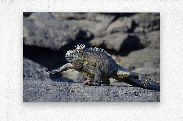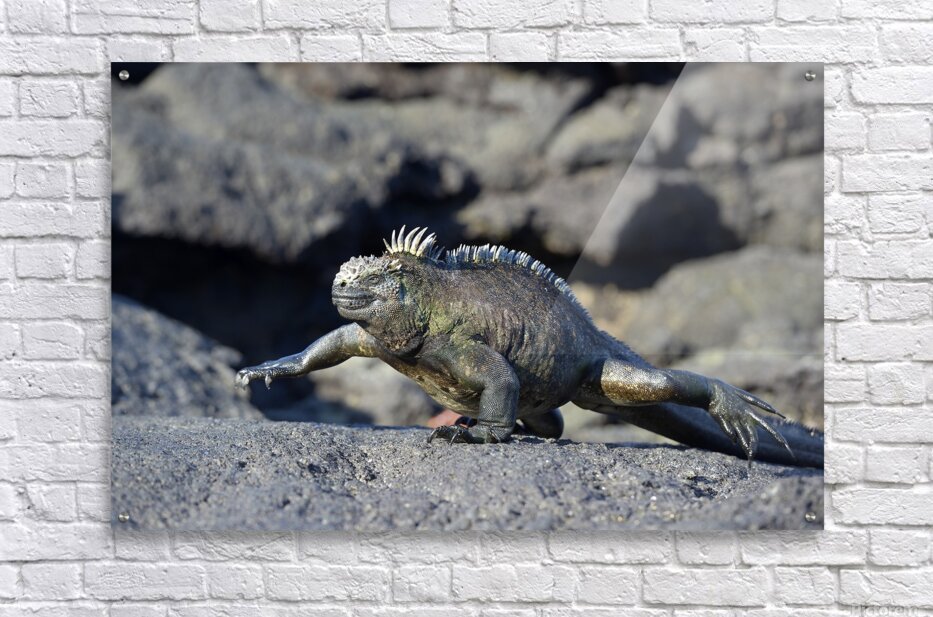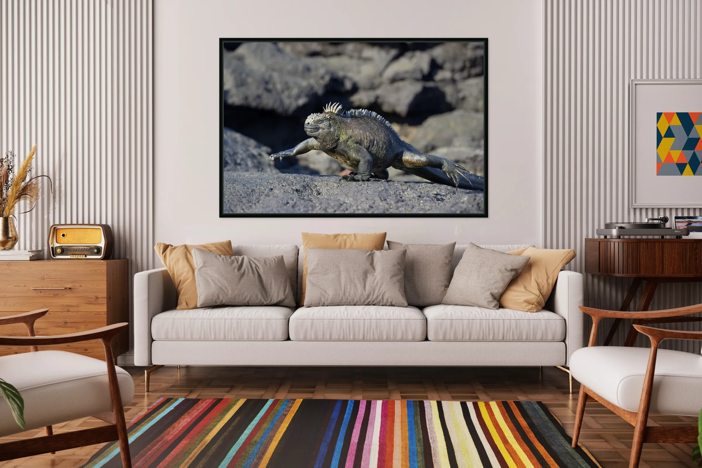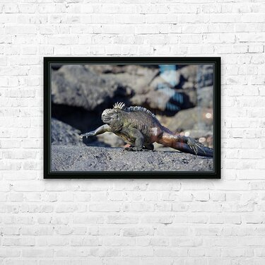 Marine Iguana Amblyrhynchus cristatus walking Punta Espinosa Fernandina Island Galapagos Islands Ecuador Picture Frame Printing