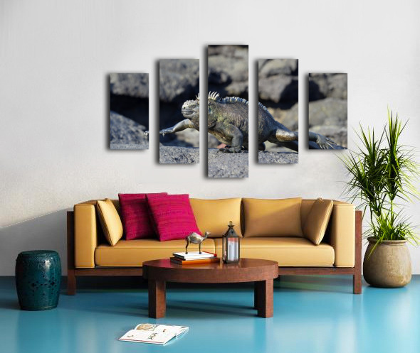 Marine Iguana Amblyrhynchus cristatus walking Punta Espinosa Fernandina Island Galapagos Islands Ecuador Canvas print