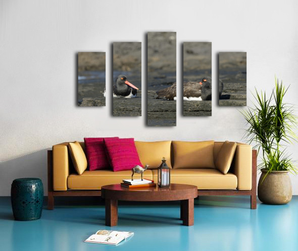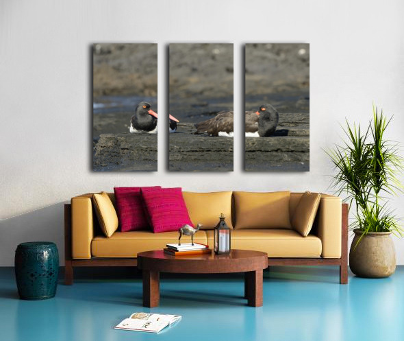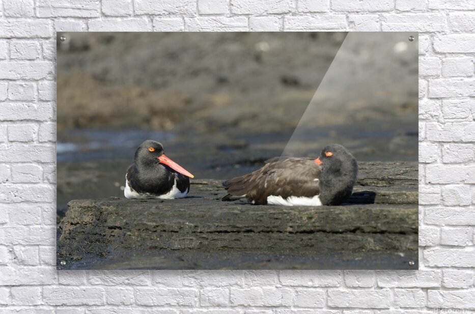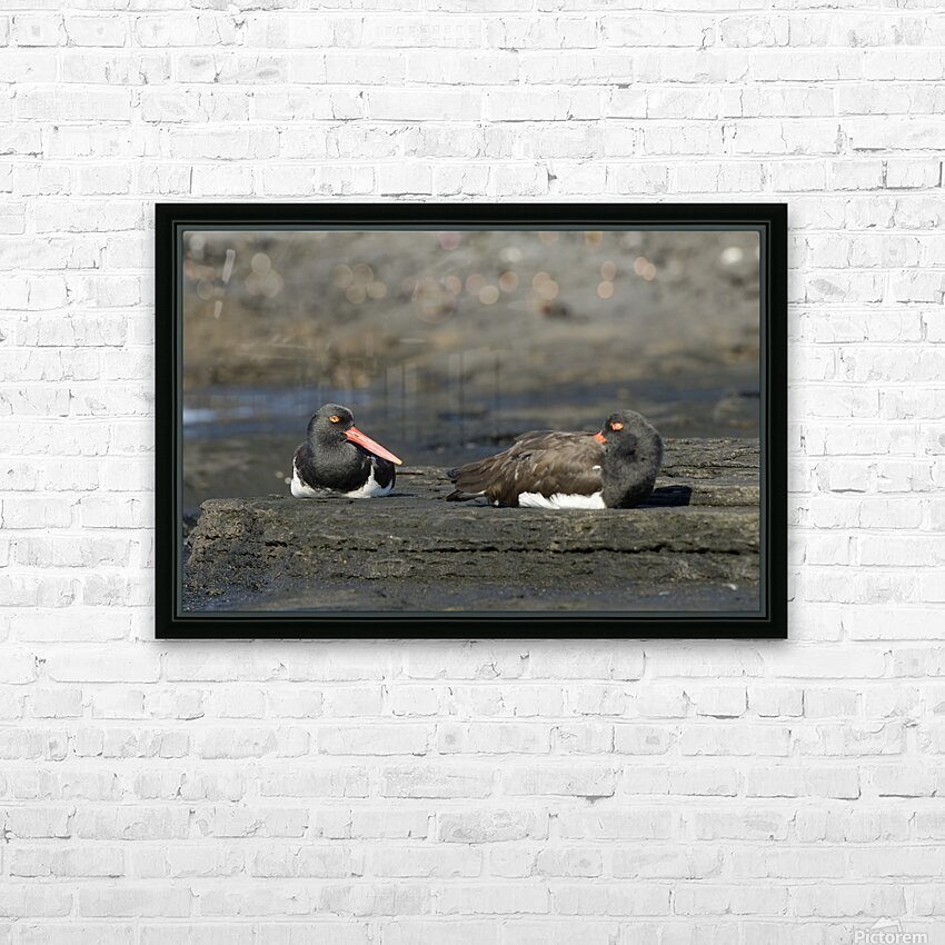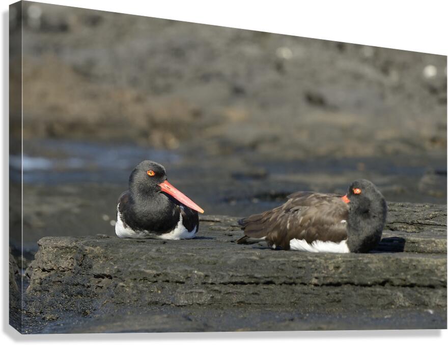 Get this artwork "American Oystercatchers Haematopus palliatus sitting on lava Puerto Egas Santiago Island Galapagos Islands Ecuador " in a framed print.