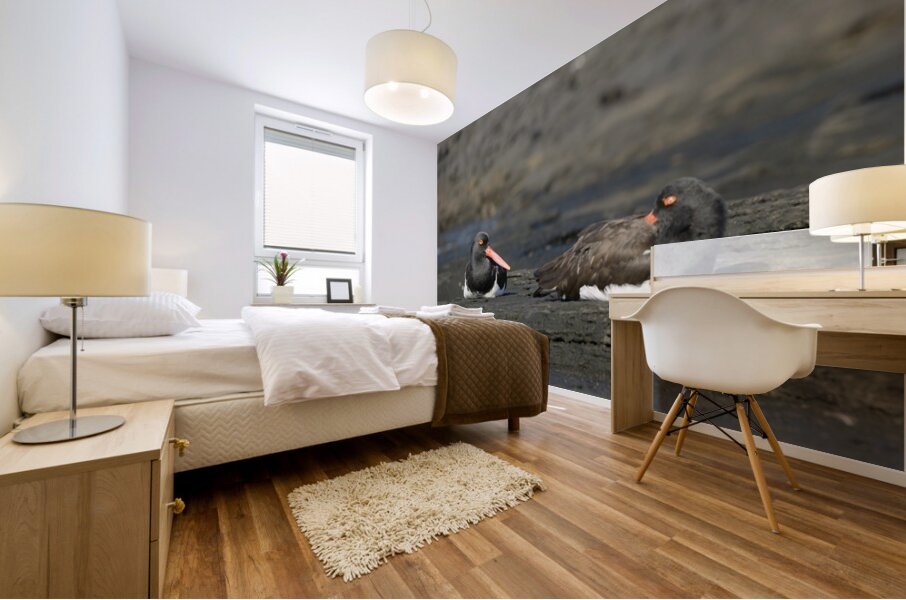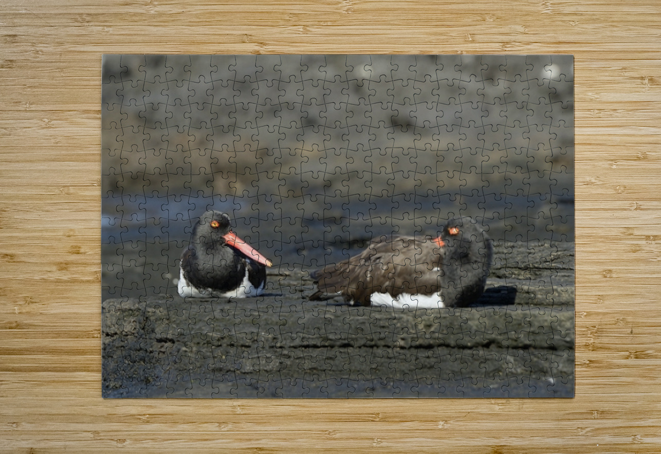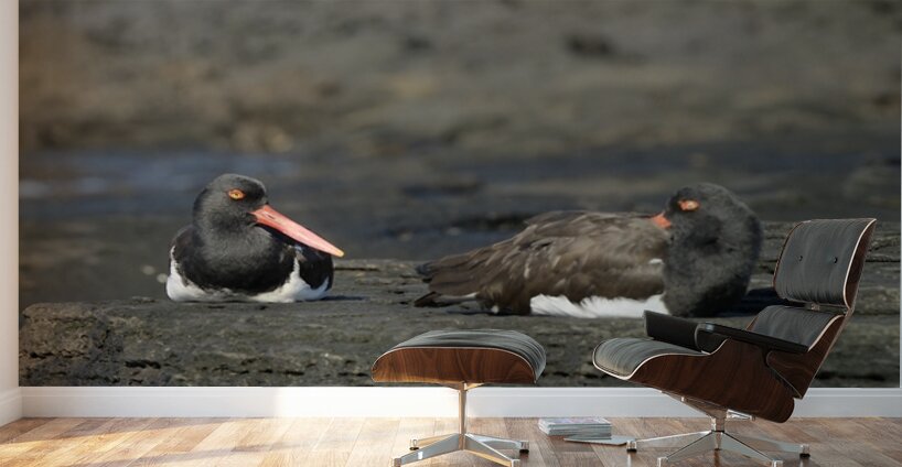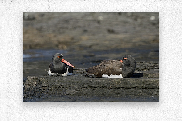ABOUT THIS ARTWORK: AMERICAN OYSTERCATCHERS HAEMATOPUS PALLIATUS SITTING ON LAVA PUERTO EGAS SANTIAGO ISLAND GALAPAGOS ISLANDS ECUADOR