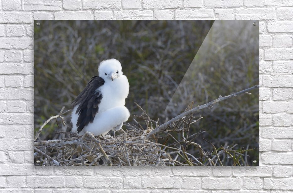 Get this artwork "Magnificent Frigatebird Fregata magnificens chick sitting on nest North Seymour Island Galapagos Islands Ecuador " in a framed print.