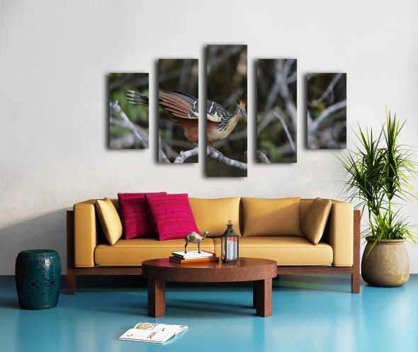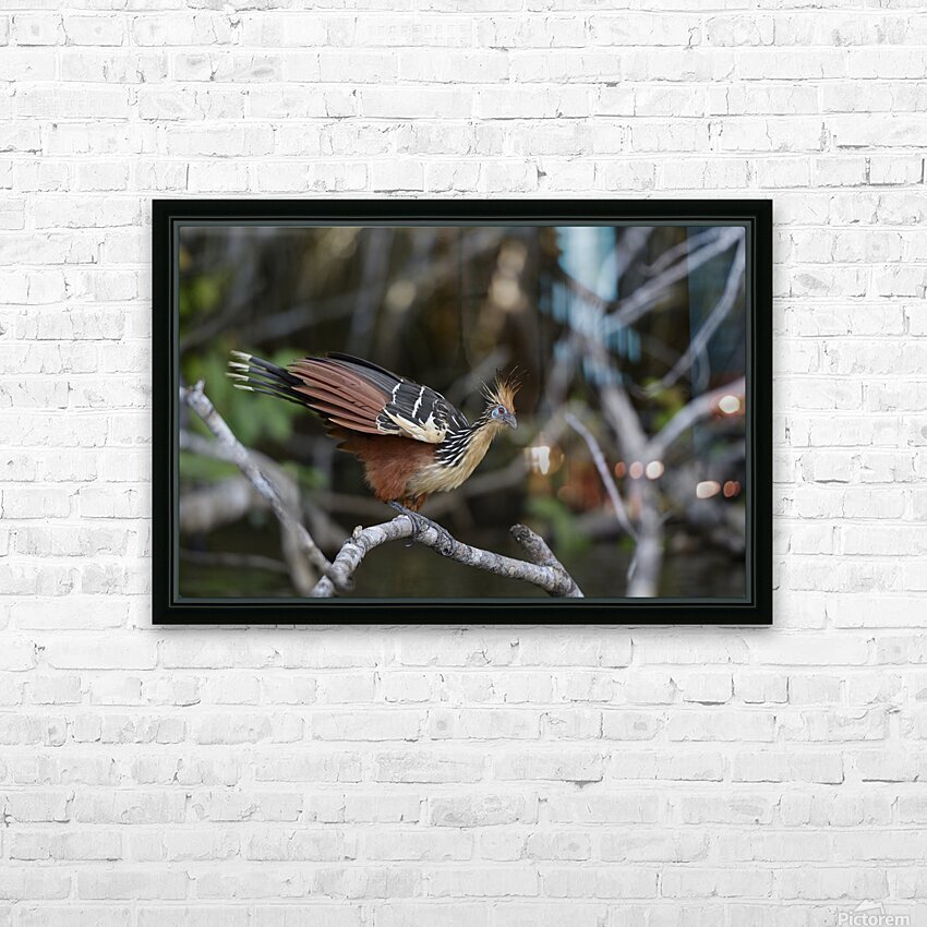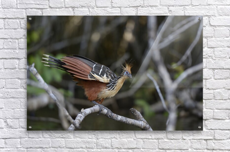 Get this artwork "Hoatzin Opisthocomus hoazin on a branch over Lake Garzacocha La Selva Jungle Eco Lodge Amazon Basin Ecuador " in a framed print.