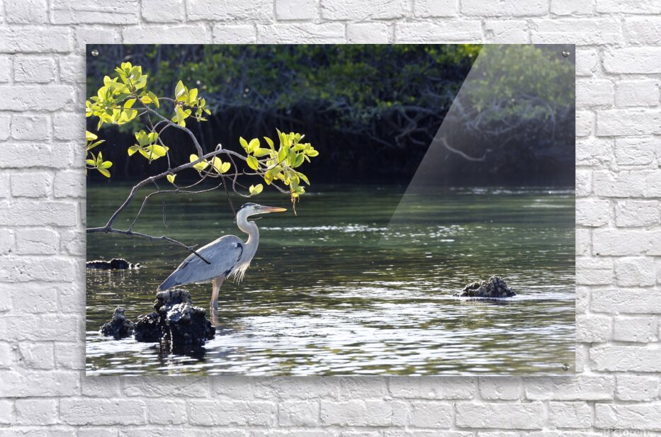 ABOUT THIS ARTWORK: GREAT BLUE HERON ARDEA HERODIAS ELIZABETH BAY ISABELA ISLAND GALAPAGOS ISLANDS ECUADOR