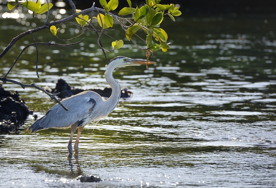 GREAT BLUE HERON ARDEA HERODIAS ELIZABETH BAY ISABELA ISLAND GALAPAGOS ISLANDS ECUADOR