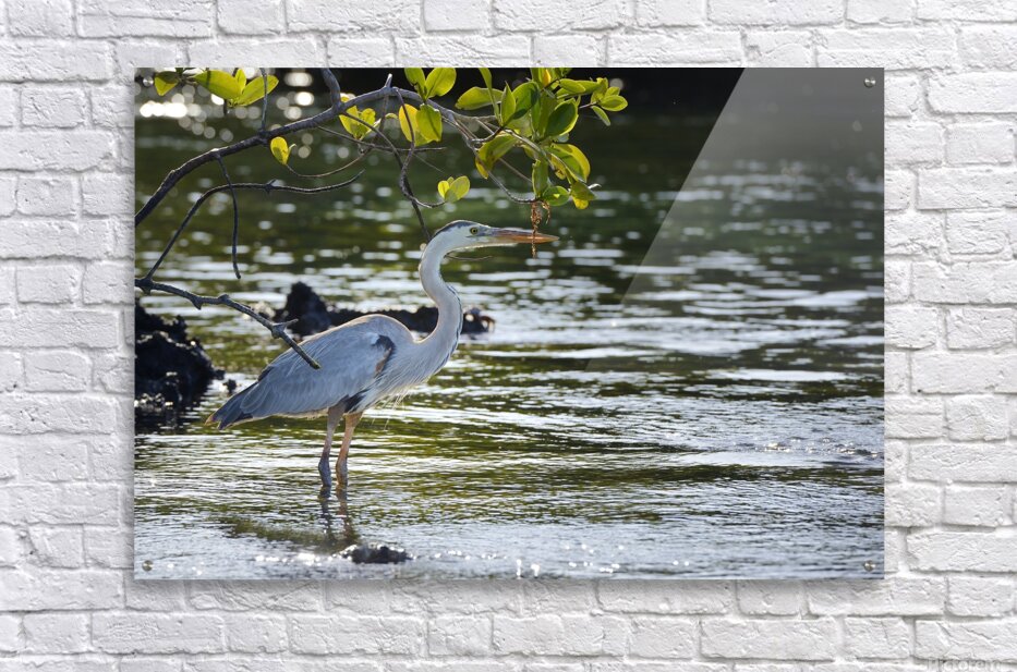 ABOUT THIS ARTWORK: GREAT BLUE HERON ARDEA HERODIAS ELIZABETH BAY ISABELA ISLAND GALAPAGOS ISLANDS ECUADOR