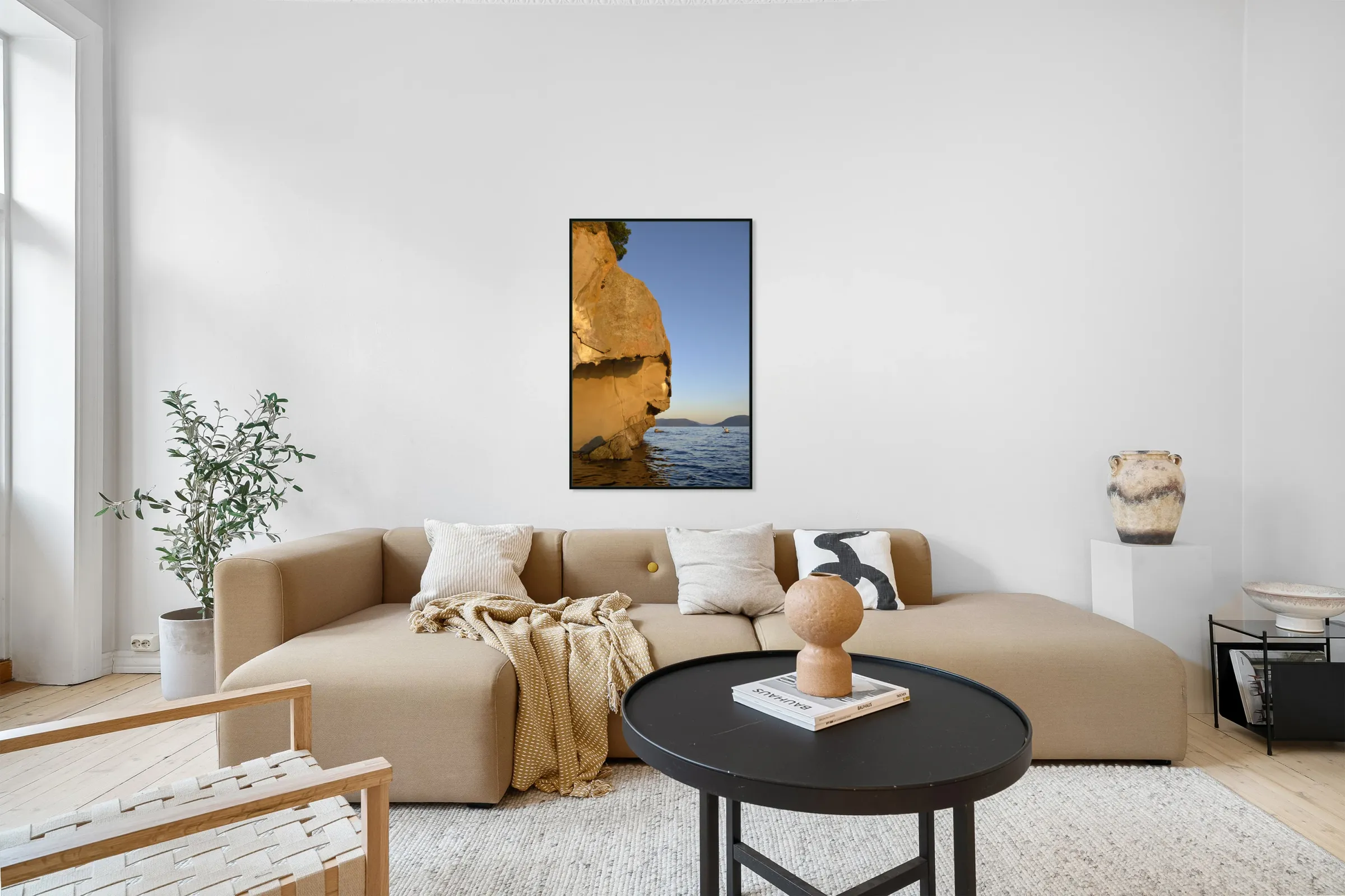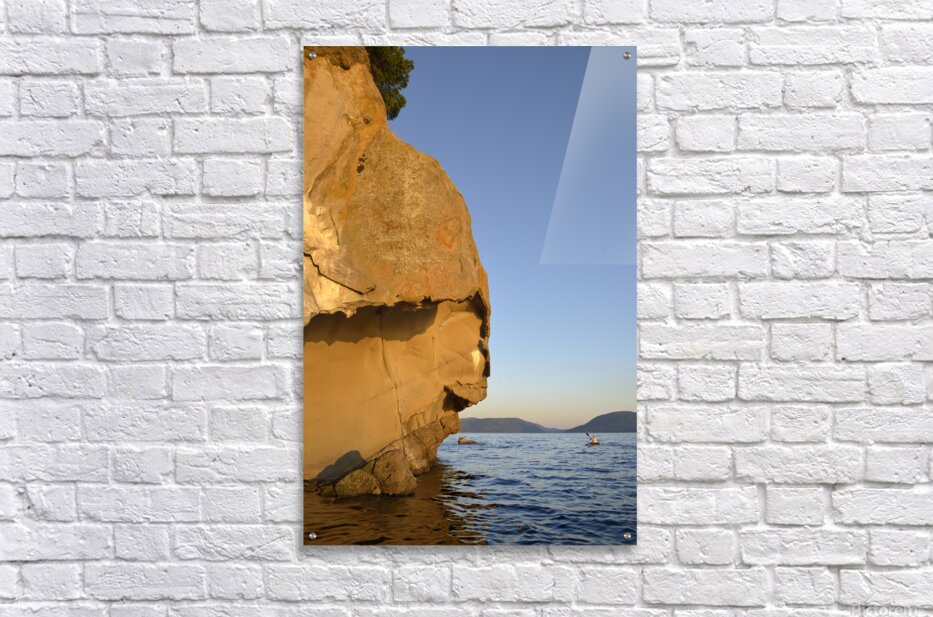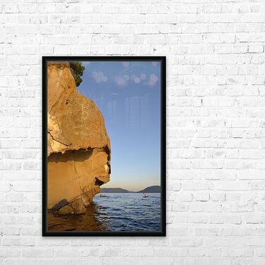 Get this artwork "Sea kayaking under sculpted sandstone cliffs" in a framed print.