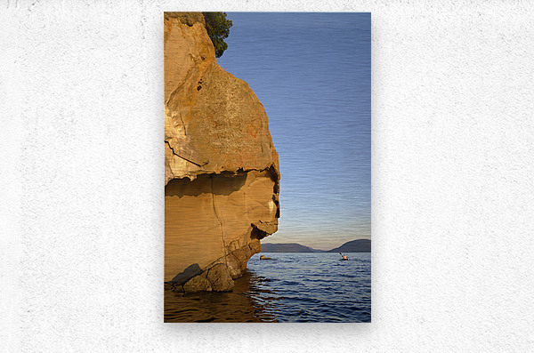 Sea kayaking under sculpted sandstone cliffs Picture Frame Printing