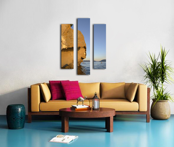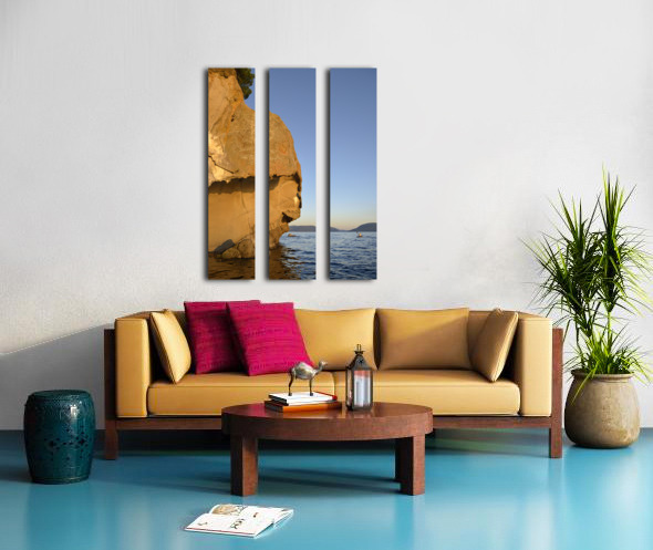 Sea kayaking under sculpted sandstone cliffs Canvas print