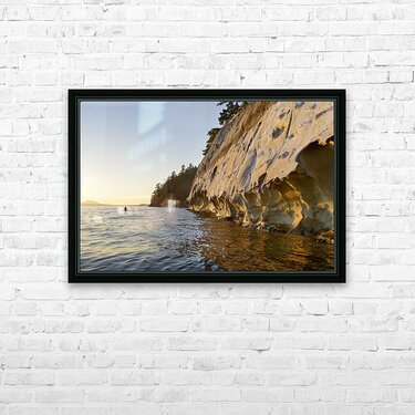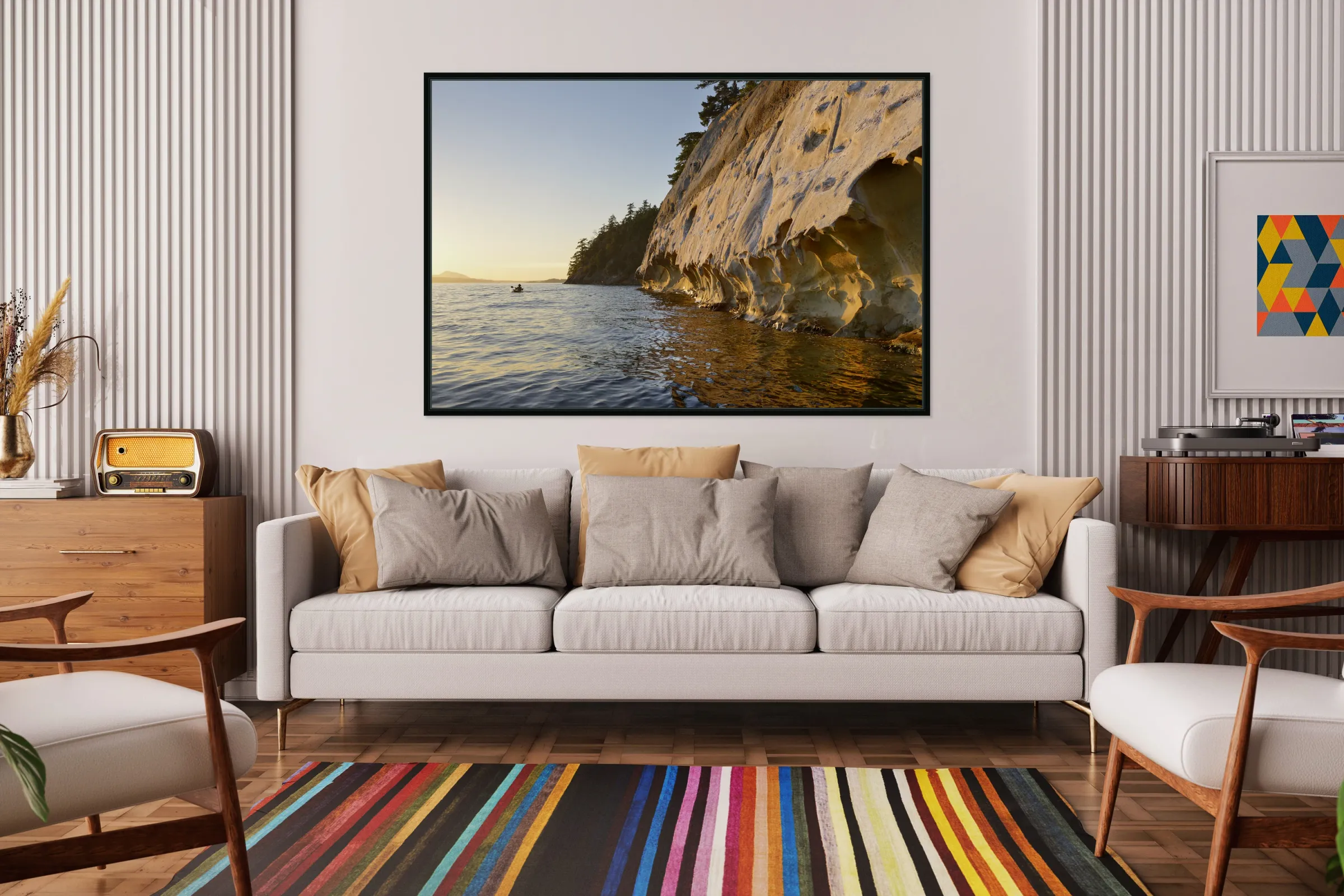 Sea kayaking under the sculpted sandstone cliffs Picture Frame Printing