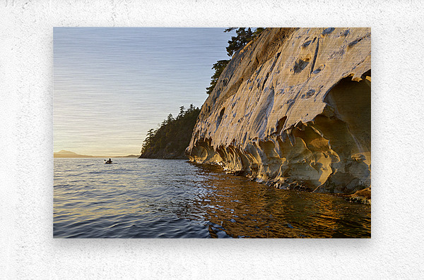 Sea kayaking under the sculpted sandstone cliffs Tent Island Gulf Islands British Columbia Canada