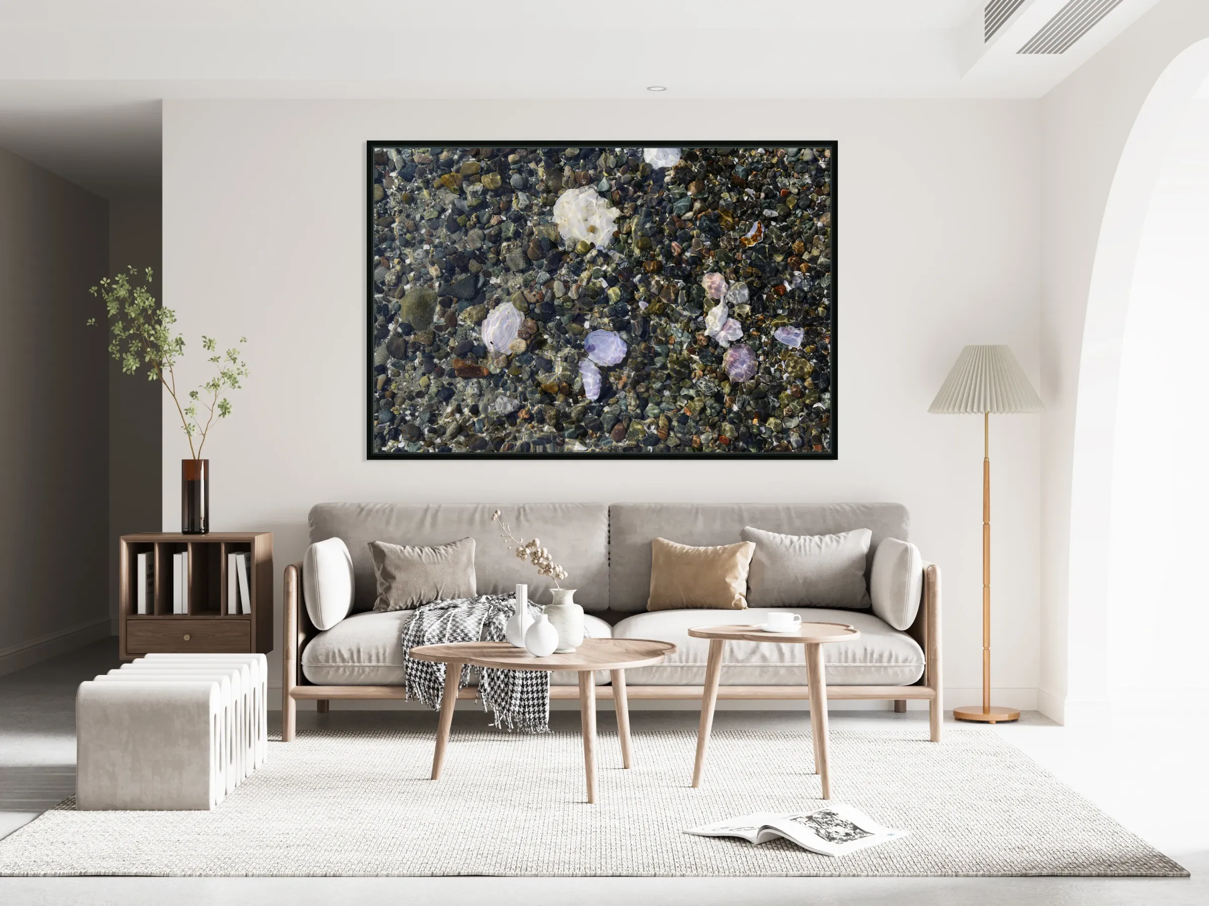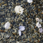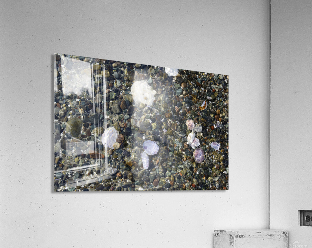 ABOUT THIS ARTWORK: DETAIL IMAGE OF ROCKS AND SHELLS ON THE BEACH