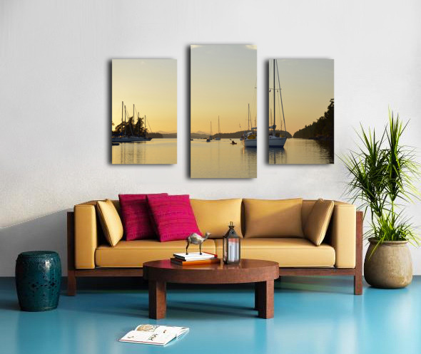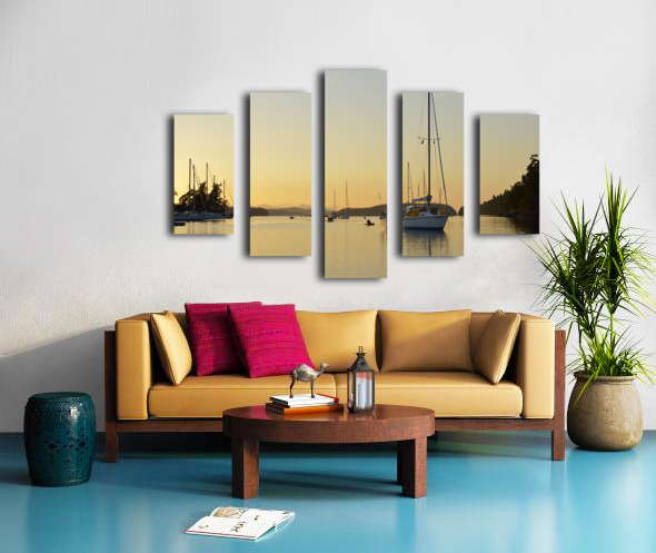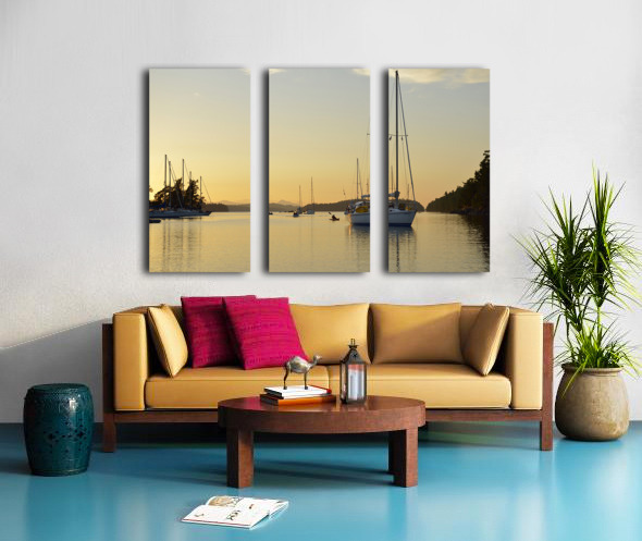 Sea kayaker and anchored boats in Princess Bay Canvas print