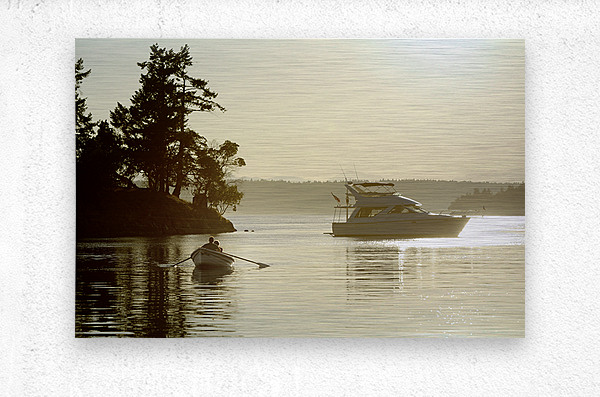 ABOUT THIS ARTWORK: COUPLE IN A DINGHY ROWING IN FRONT OF A PLEASURE MOTORBOAT