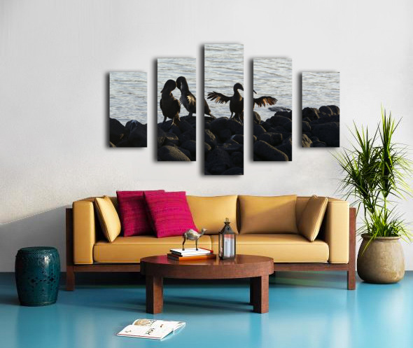 Flightless Cormorants Phalacrocorax harrisi stretching their wings. Punta Espinosa. Fernandina Island. Galapagos Islands. Ecuador Canvas print