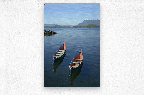 Get this artwork "Two native canoes anchored in Tofino Harbour" in a framed print.