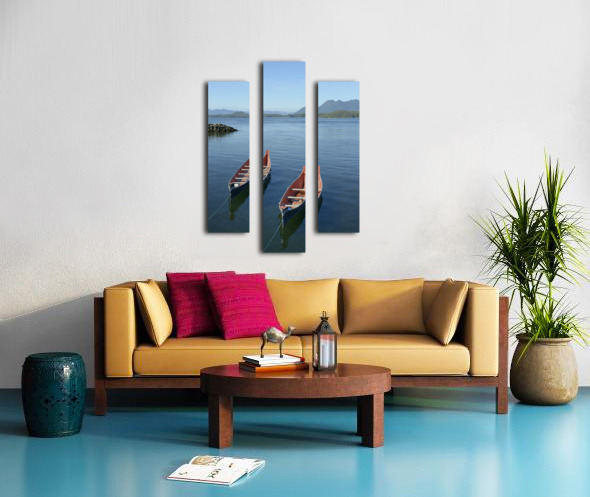 Two native canoes anchored in Tofino Harbour Canvas print