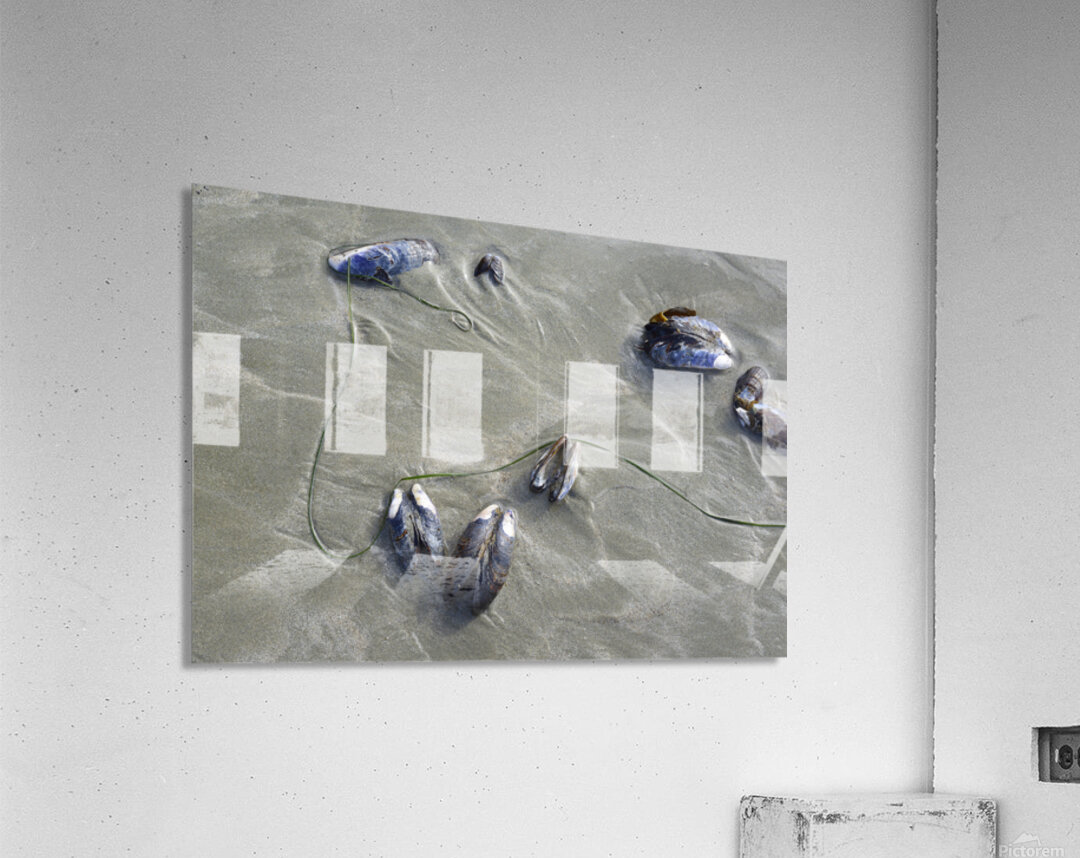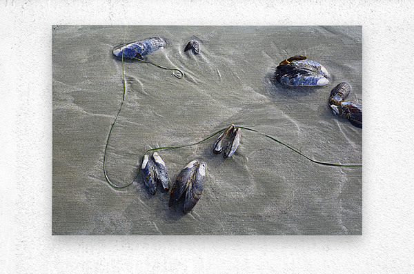 ABOUT THIS ARTWORK: ABSTRACT PHOTO OF MUSSELS ON THE SAND CHESTERMAN BEACH