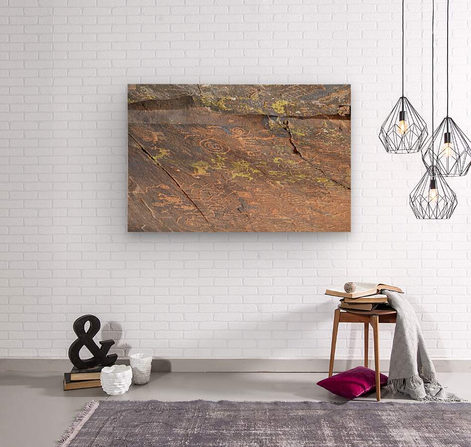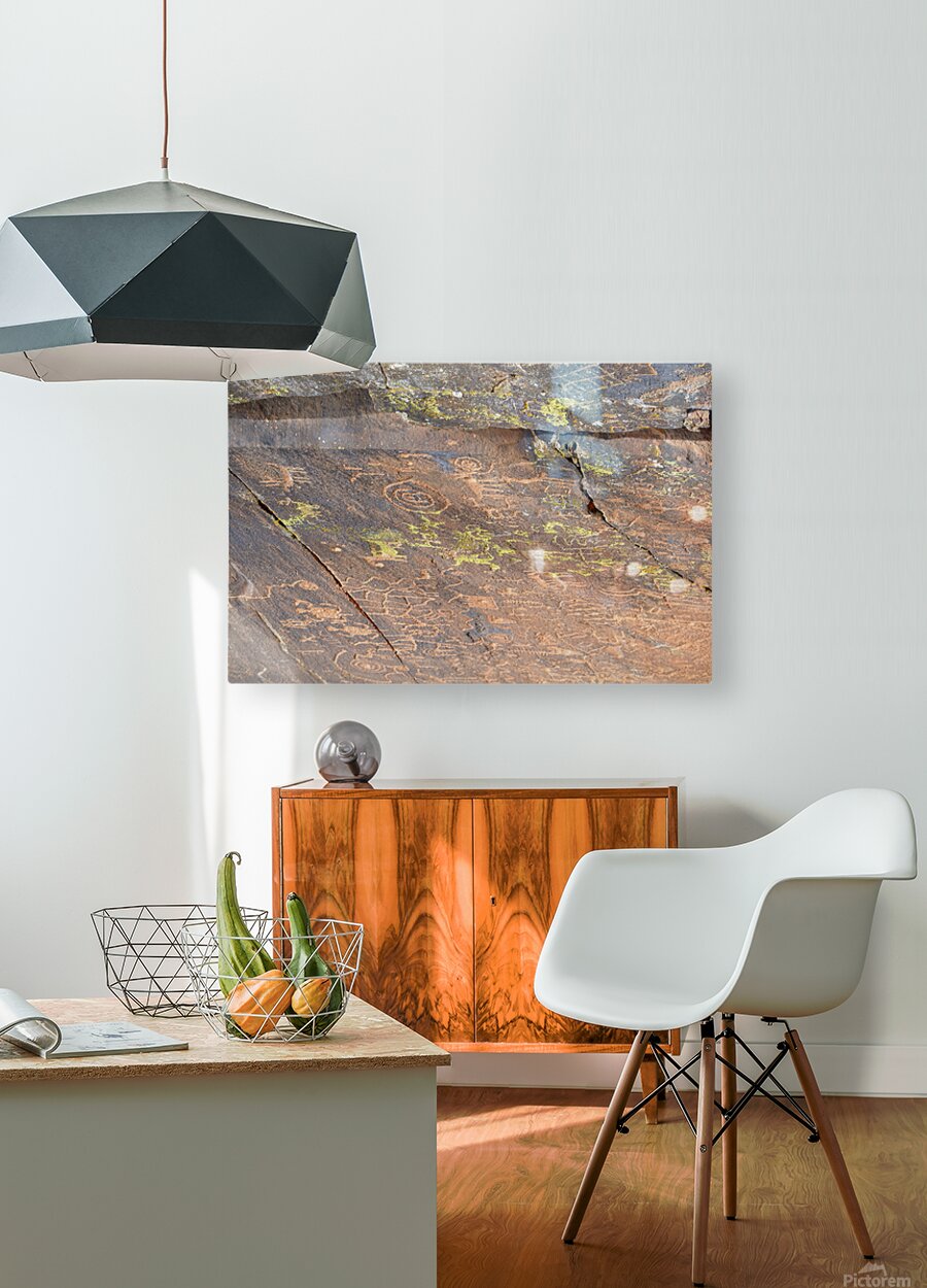 ABOUT THIS ARTWORK: ANCIENT PETROGLYPHS SHOWCASING ANIMAL FIGURES AND GEOMETRIC DESIGNS CRANE PETROGLYPH SITE VERDE VALLEY ARIZONA