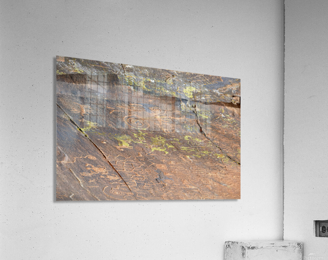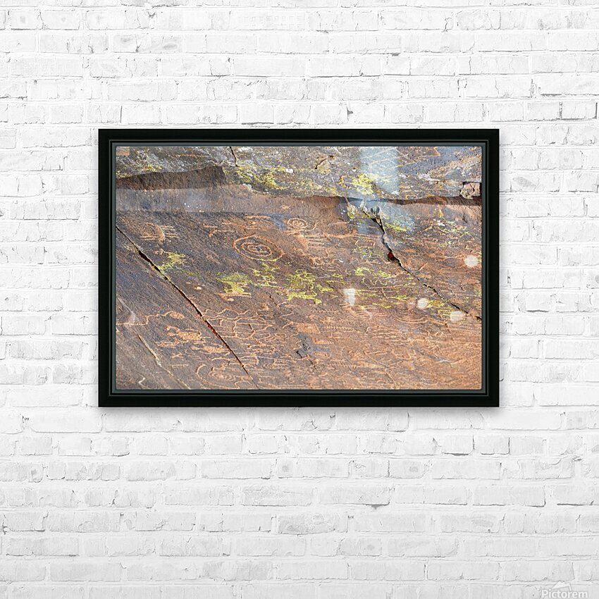 Ancient petroglyphs showcasing animal figures and geometric designs Crane Petroglyph Site Verde Valley Arizona Picture Frame Printing