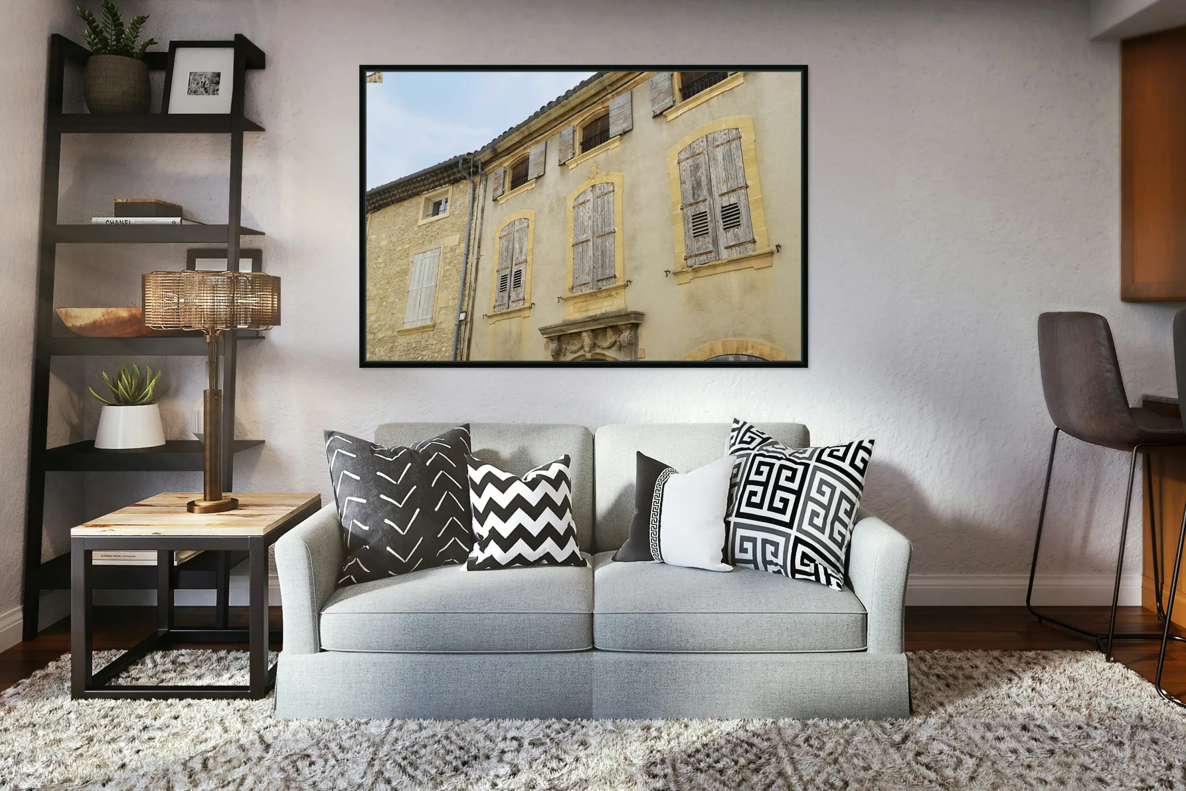 Get this artwork "Shuttered windows on an old apartment building Lourmarin Vaucluse Provence Alpes Côte dAzur France" in a framed print.