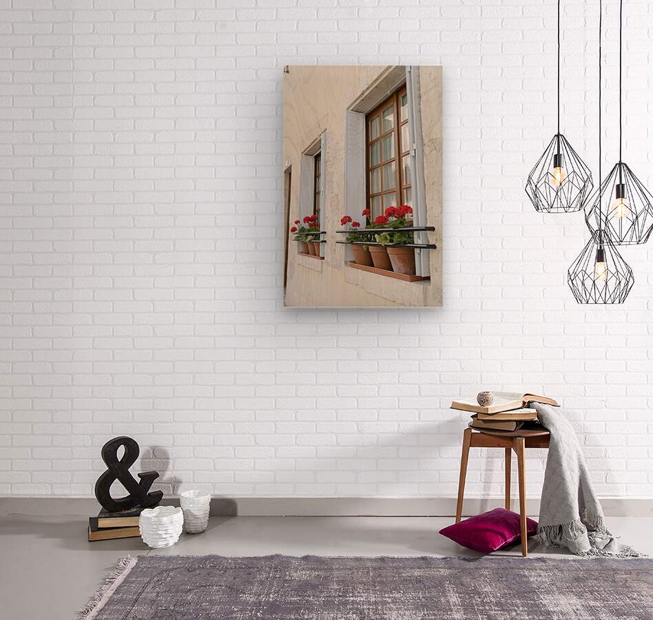 ABOUT THIS ARTWORK: POTTED RED GERANIUMS IN A WINDOW CHâTILLON SUR LOIRE CENTRE FRANCE