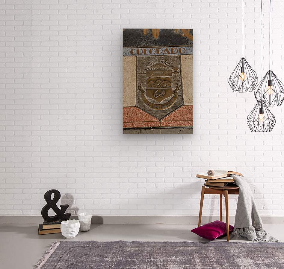 Bas relief plaque for Colorado is inlaid into Hoover Dams plazas surface one of the seven states that fall within the Colorado Rivers basin. Hoover Dam Arizona Nevada USA Picture Frame Printing