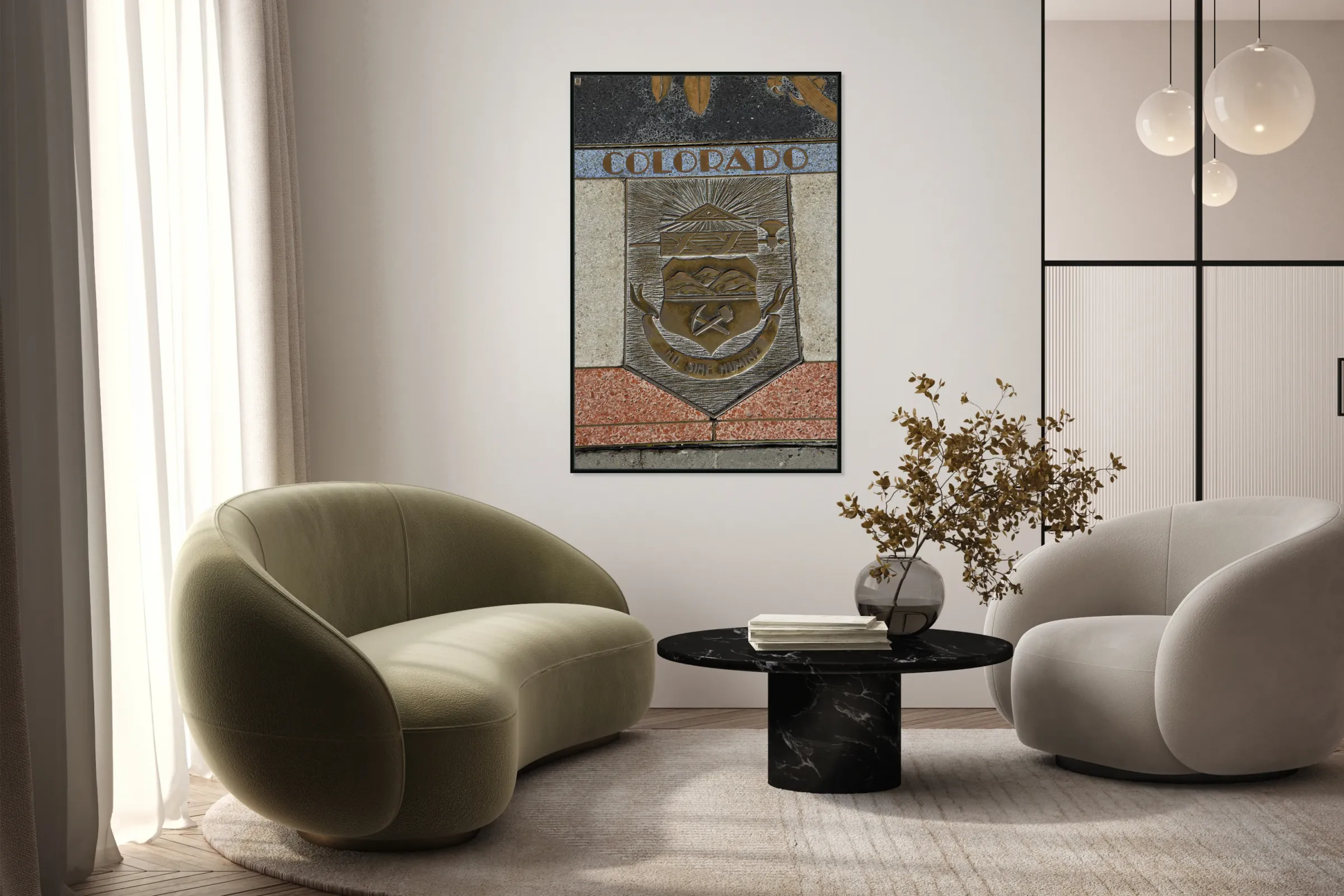 Get this artwork "Bas relief plaque for Colorado is inlaid into Hoover Dams plazas surface one of the seven states that fall within the Colorado Rivers basin. Hoover Dam Arizona Nevada USA" in a framed print.
