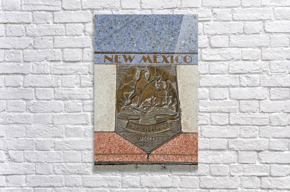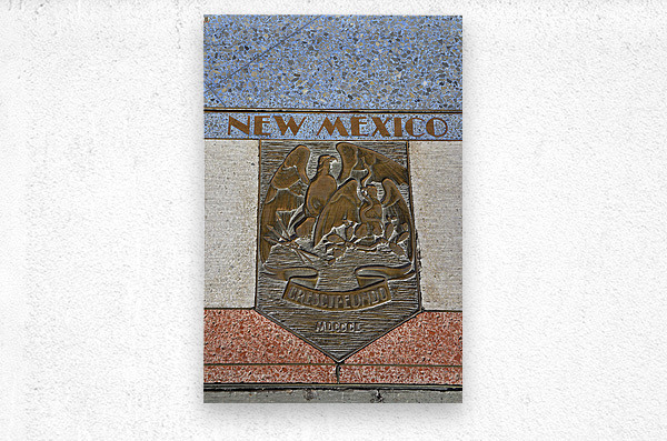 ABOUT THIS ARTWORK: BAS RELIEF PLAQUE FOR NEW MEXICO IS INLAID INTO HOOVER DAMS PLAZAS SURFACE ONE OF THE SEVEN STATES THAT FALL WITHIN THE COLORADO RIVERS BASIN. HOOVER DAM ARIZONA NEVADA USA