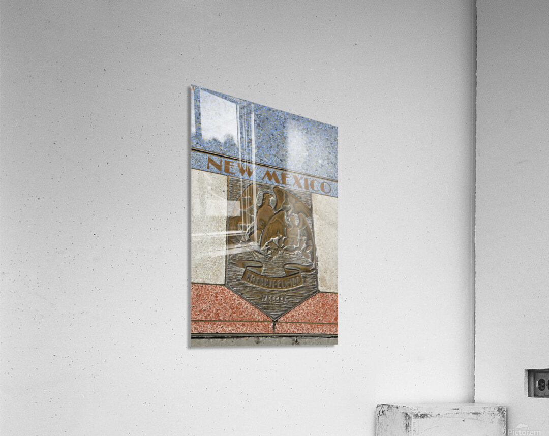 Bas relief plaque for New Mexico is inlaid into Hoover Dams plazas surface one of the seven states that fall within the Colorado Rivers basin. Hoover Dam Arizona Nevada USA Picture Frame Printing