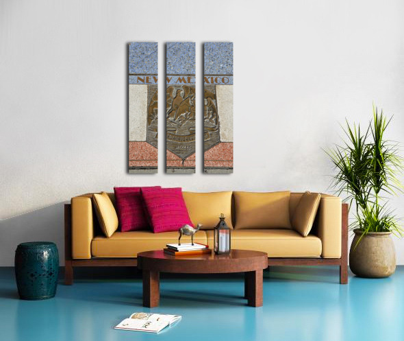 Bas relief plaque for New Mexico is inlaid into Hoover Dams plazas surface one of the seven states that fall within the Colorado Rivers basin. Hoover Dam Arizona Nevada USA Canvas print