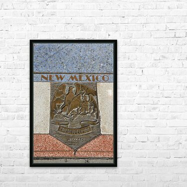 Get this artwork "Bas relief plaque for New Mexico is inlaid into Hoover Dams plazas surface one of the seven states that fall within the Colorado Rivers basin. Hoover Dam Arizona Nevada USA" in a framed print.