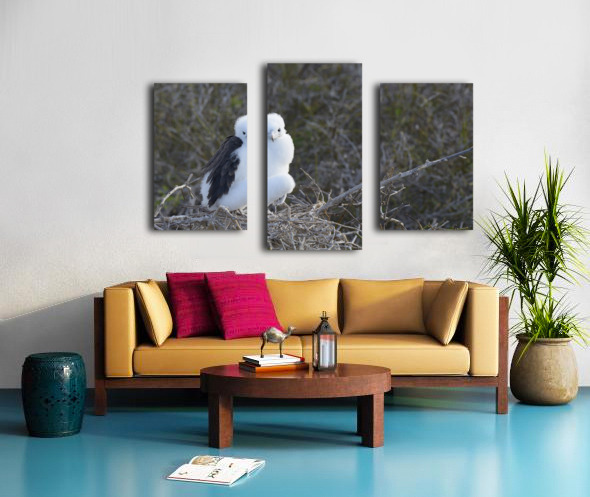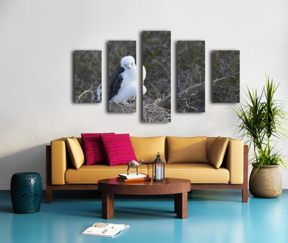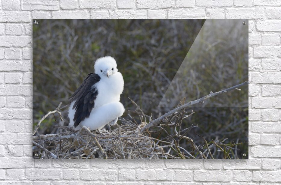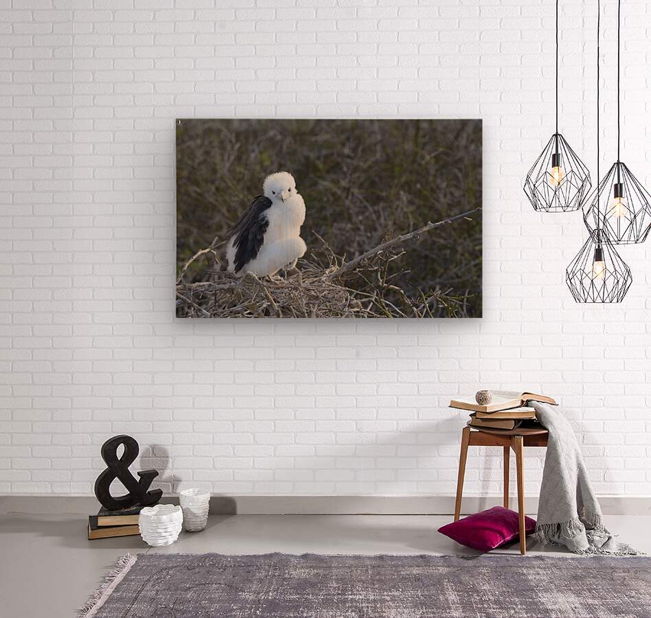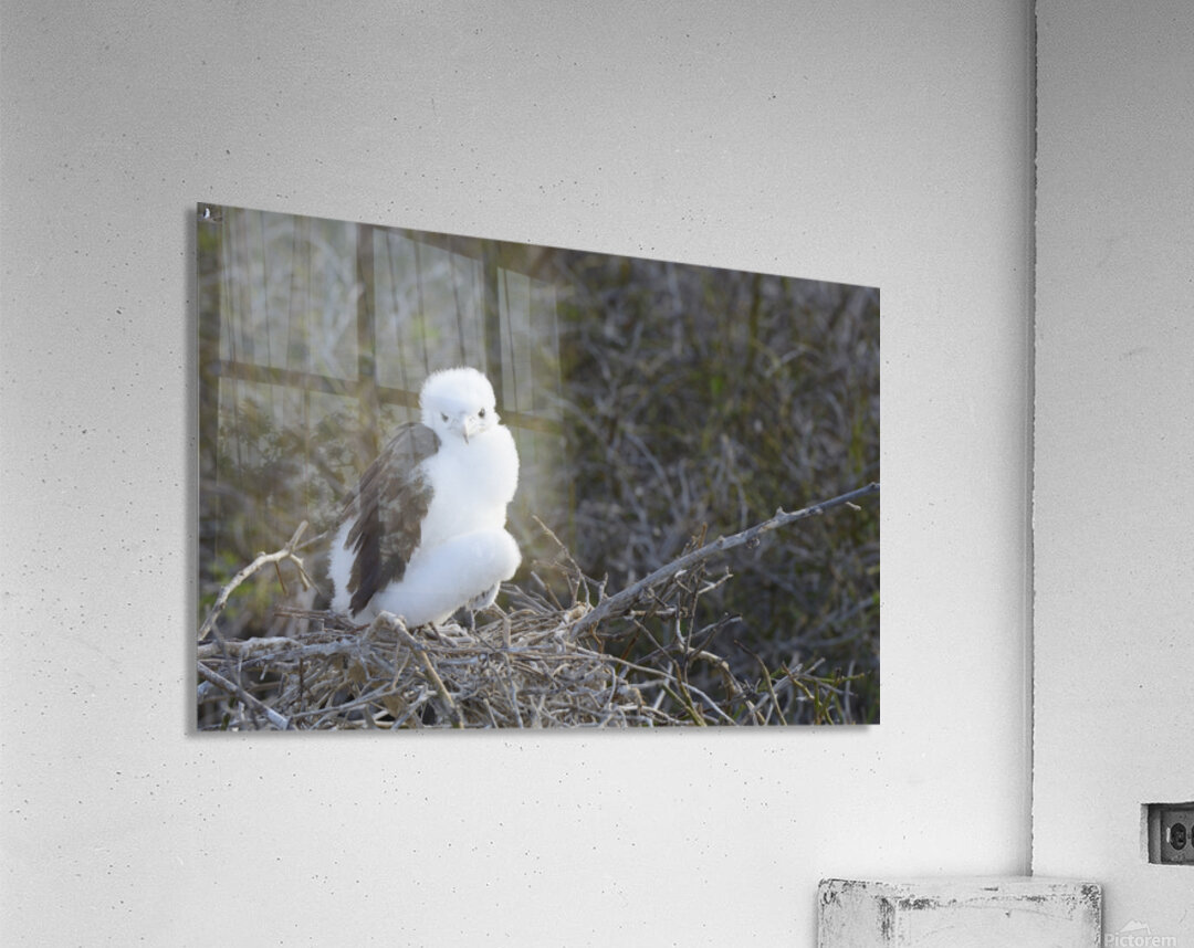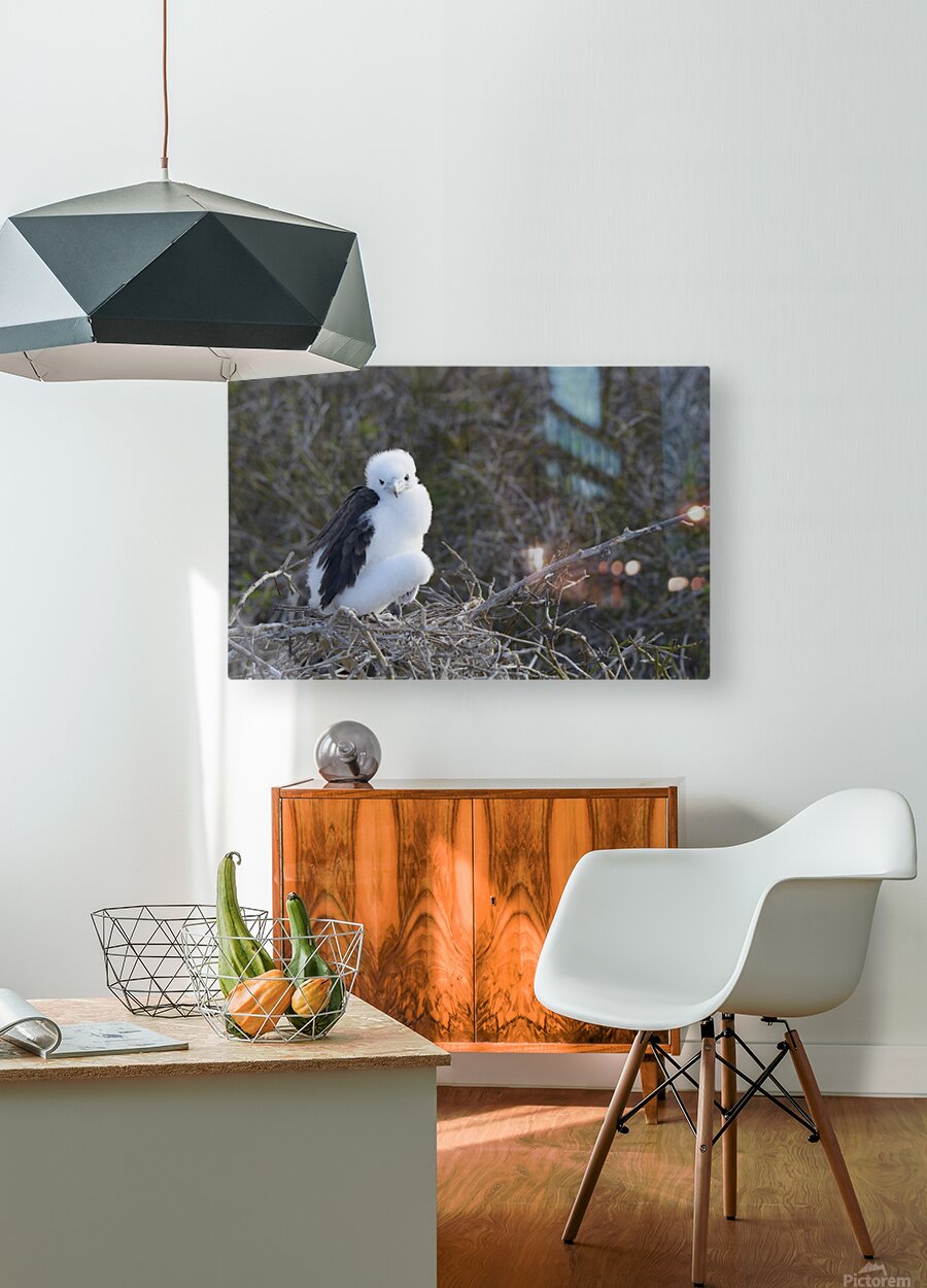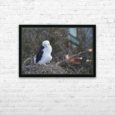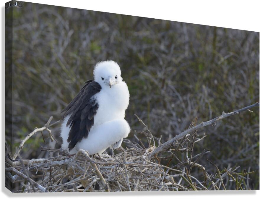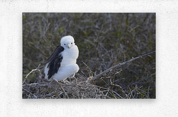 Magnificent Frigatebird Fregata magnificens chick sitting on nest North Seymour Island Galapagos Islands Ecuador