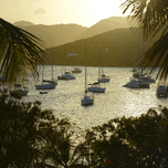 Catamarans and sailboats at the anchorage at Pussers Marina Cay Kevin Oke Puzzle