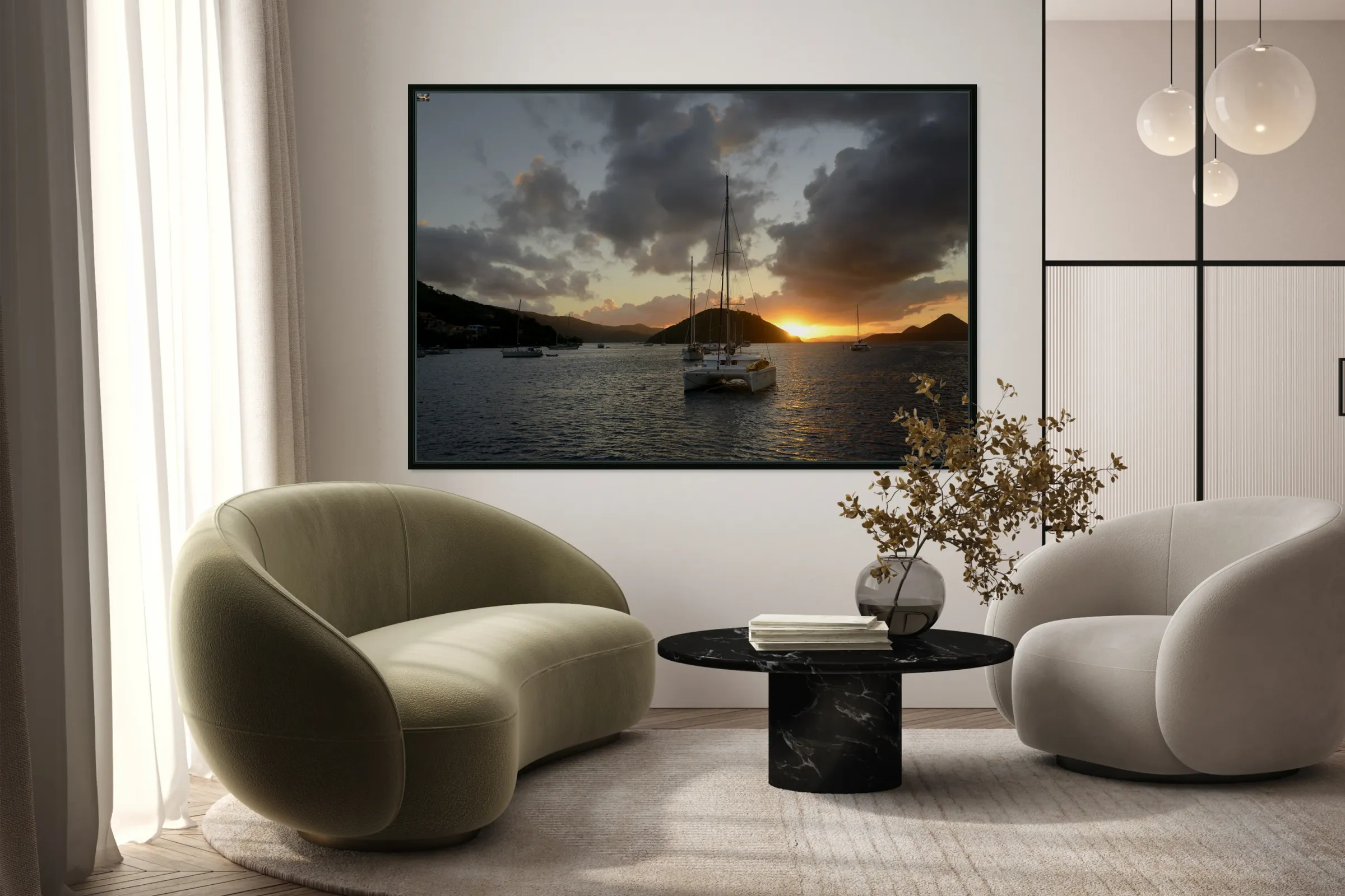 Caribbean sunset with catamarans and sailboats  Picture Frame Printing